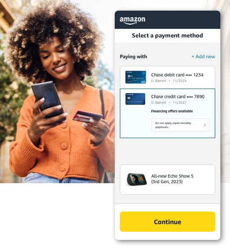 - Add your eligible Chase credit cards to your Amazon wallet