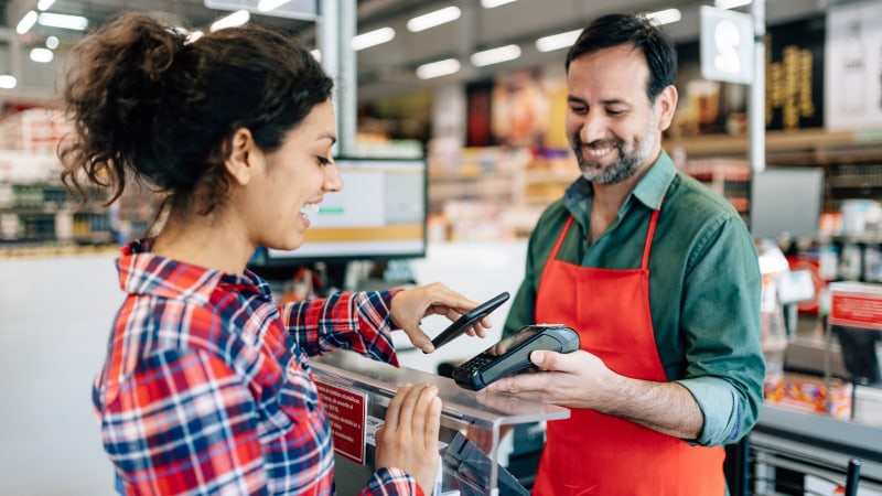 Near field communication (NFC) allows your mobile device to interact with the NFC terminal to securely exchange data. NFC is a common method used by many digital wallets, including some of the biggest names in the industry.