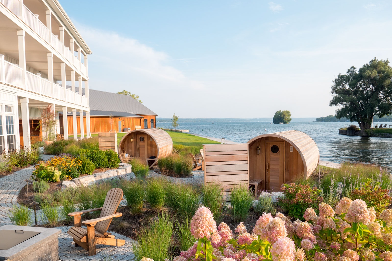 You don’t have to choose between water and land at this Finger Lakes resort. Go sailing, kayaking or canoeing—then explore the 30-mile Canandaigua Lake Wine Trail. This is a place where city slickers from New York, Boston, Toronto and beyond come to experience a slower pace of life and be reminded of what really matters: beautiful design (rooms include hand-carved furniture), great food (the on-site tavern serves a knockout rib eye), relaxation (don’t miss the outdoor barrel saunas at the spa) and a perfectly chilled glass of Riesling.