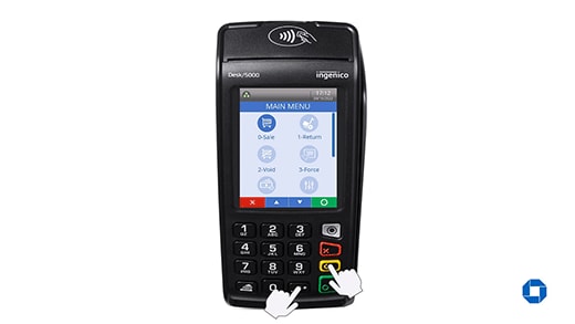 - From the Home Screen with the Chase logo, press the green [Enter] key to access the Main Menu.