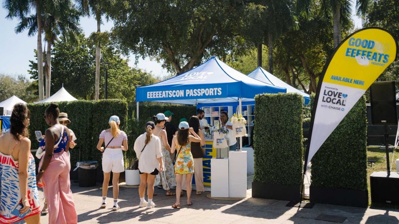 Over February 8 and February 9, EEEEEATSCON Miami showcased the best of the city’s food scene alongside live music performances and guest speakers. And at this year’s edition of the annual food festival, Love Local with Chase launched the Good EEEEEATS Passport for attendees—a new way to inspire and track visits to different restaurants throughout each day. Attendees could earn a passport stamp at every restaurant booth where they made a purchase. Once they had five stamps, they could redeem them for exclusive swag.