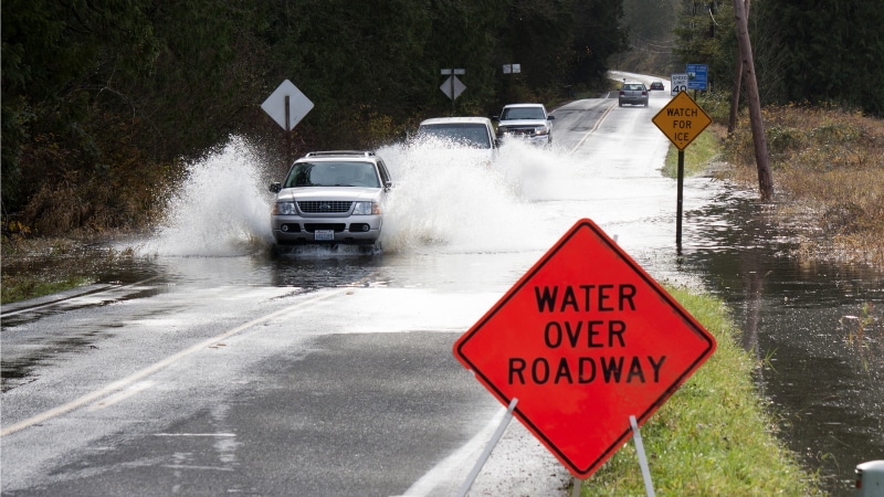 - Be wary of water: It helps to drive slowly and carefully past puddles or standing water, as it can be easy to misjudge just how deep they might be.