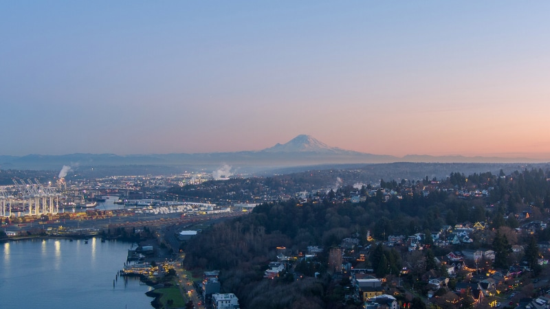 Seattle-Tacoma International Airport, known by locals as Sea-Tac, is roughly 14 miles south of Downtown Seattle and 18 miles north-northeast of Downtown Tacoma. It’s one of the busiest airports in the U.S. and is home to over 20 international airlines.
