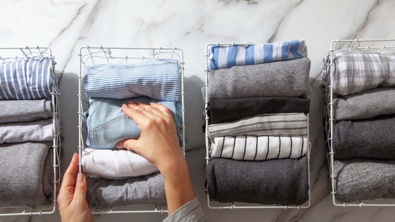 - Use seasonal bins: If you find your closet is feeling crowded, try using a seasonal approach. During the summer store your heavy sweaters and pants in storage bins up on a shelf, and in the winter put away your sundresses and shorts.