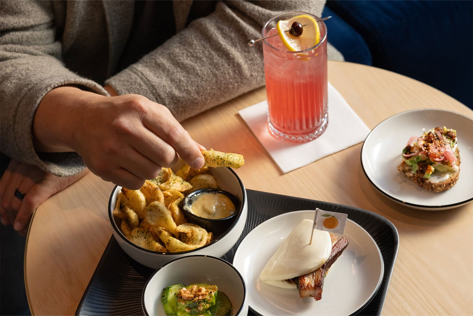Snack on Momofuku-designed bites like crispy nori sidewinder potatoes, spicy cucumber salad or a glazed pork belly pork bun.