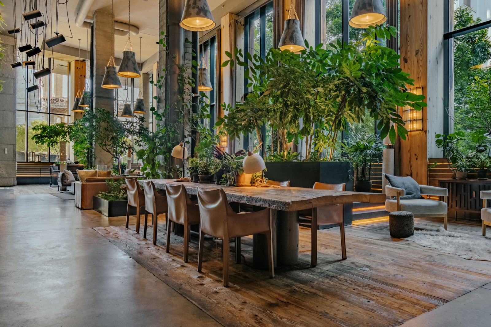Fans of the 1 Hotel brand and its eco-conscious, wellness-warrior ethos will find familiar trademarks around the property, including a lineup of “happenings” for guests that might include an early-morning run club or a matcha tasting, and upward of 7,000 live plants tended to by a veritable fleet of gardeners.