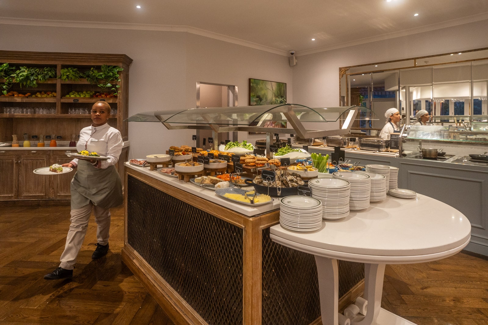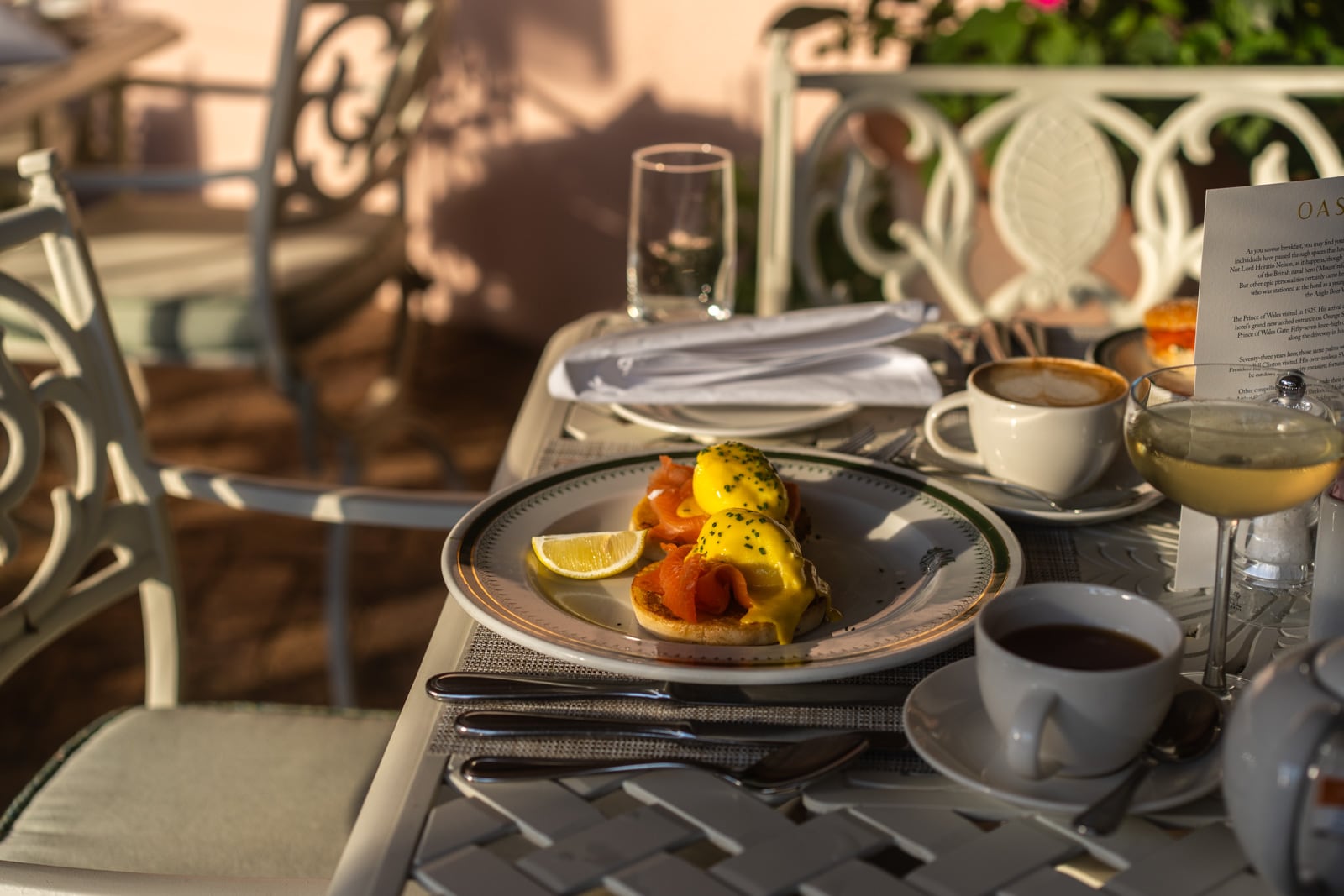 Dining options are a mix of old and new. Breakfast is included at Oasis, and it’s an absolute stunner, with a robust buffet offering juices and sparkling wine, cold meats and smoked fish, and more pastries than you’d find at most French patisseries. From the hot dishes, the eggs Benedict is a knockout. It’s served with your choice of ham, salmon or spinach on a freshly made English muffin with a perfectly poached egg and lemony hollandaise.