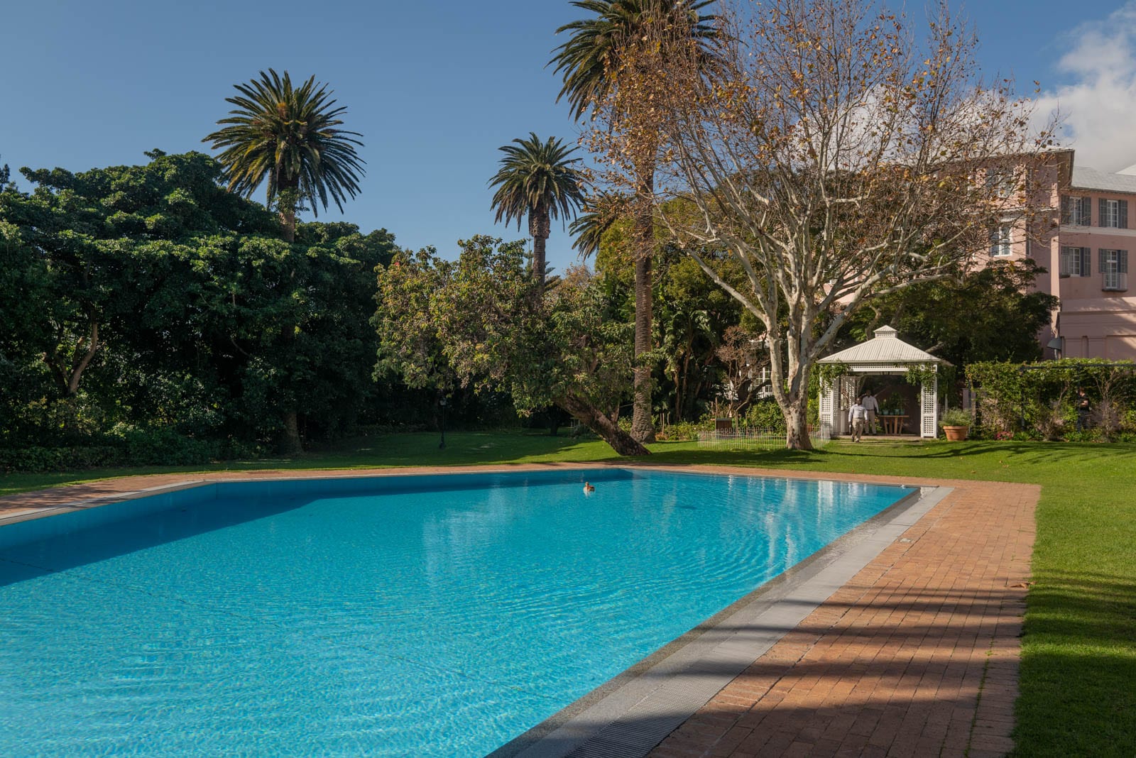 Though most of the buildings have been painted pink, the Helmsley Hotel wing is required to maintain its white exterior. A protected building and the former home of South Africa’s first Jewish congregation, it now functions as the hotel’s pet-friendly wing. Dogs and cats are welcome as long as they’re well behaved and kept on a leash (yes, even cats—with the exception of Nellie, Mount Nelson’s free-range feline-in-residence).