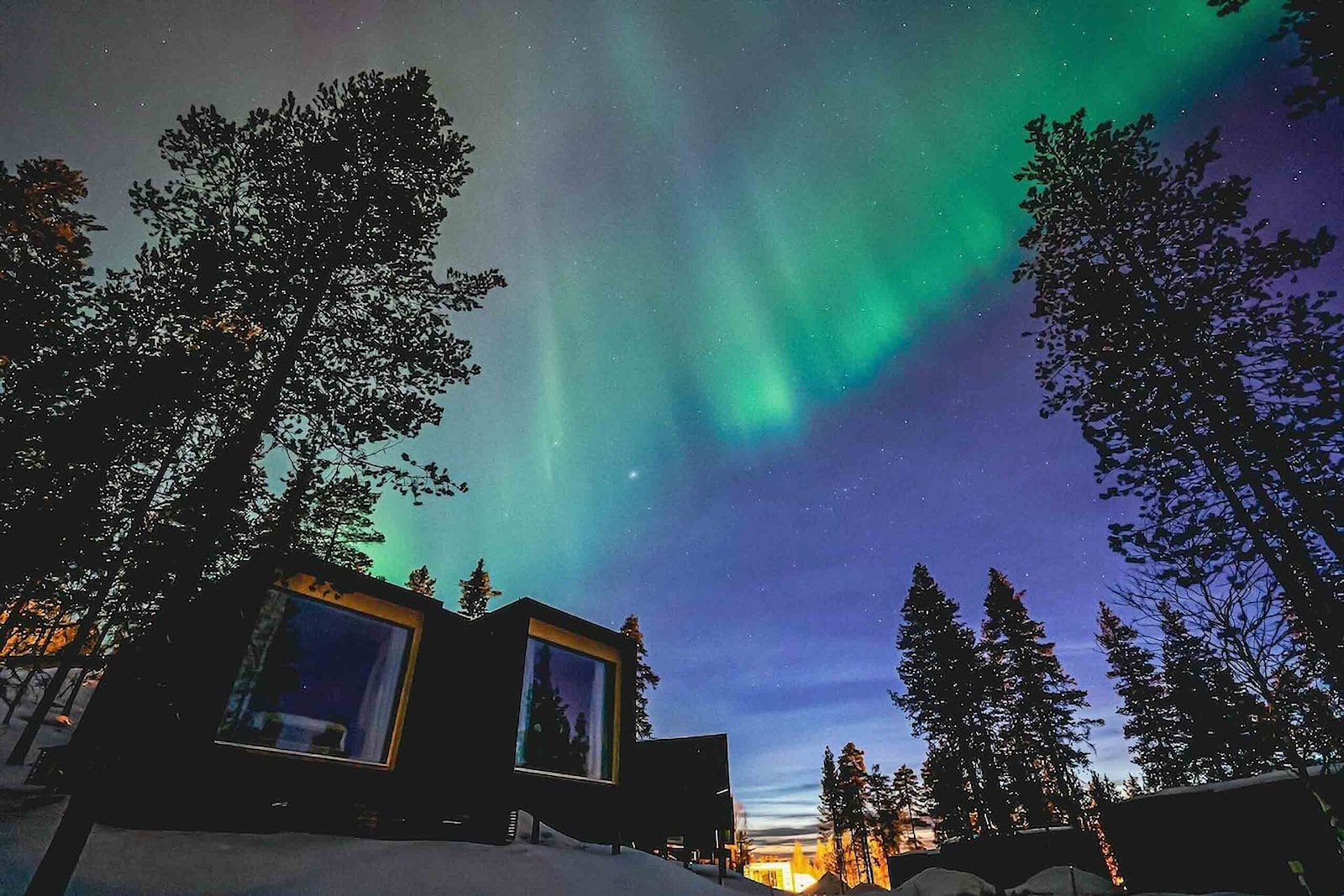 Witness the magic of the northern lights from one of the cabins at the Arctic TreeHouse Hotel, all of which feature large floor-to-ceiling windows. The GlassHouse suites even have fireplaces, kitchenettes and a private in-room sauna. When you're ready to venture outdoors, book the hotel's starry sky experience, which brings you through the snow-filled forest to enjoy a traditional Lappish feast on a heated sledge. Or, opt for a nighttime reindeer tour, where you'll be led to a crackling campfire under the moonlight.