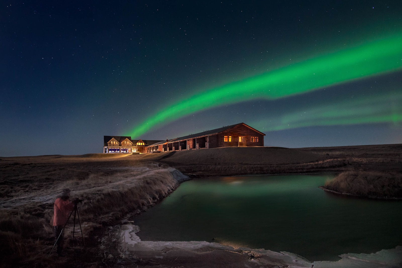 Chase the northern lights in the remote Icelandic countryside at Hotel Rangá, which offers a range of services from September to mid-April to ensure a successful viewing. With the press of a button on your room phone, you can set an aurora wake-up call and the concierge will reach out when the lights are visible. Come game time, head to one of the outdoor lookout benches or three geothermal hot tubs around the property for the best views. You don’t even need to worry about packing supplies, as the hotel has snowsuits, blankets and tripods for guests to borrow.