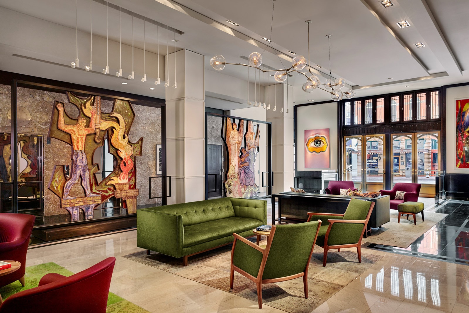 Thompson Dallas by Hyatt made a splash when it opened in 2020 in the formerly empty National building, a striking skyscraper created by George Dahl, who also designed the Art Deco structures in nearby Fair Park. The hotel blends sophisticated walnut and brass accents with works by local and international artists, and the extensive spa is a must after a day of exploring, with a cold plunge pool and infrared sauna—but then you’ll have to decide on dinner. Wood-grilled branzino at upscale Italian restaurant Monarch, or shio duck and Wagyu ramen at Kessaku cocktail and sake lounge? Teriyaki smash burgers at tiny Catbird or Cajun crawfish fettuccine at French-American bistro Little Daisy? The latter offers 50-cent martinis with the purchase of six oysters during the daily Iceberg Hour, if that helps.