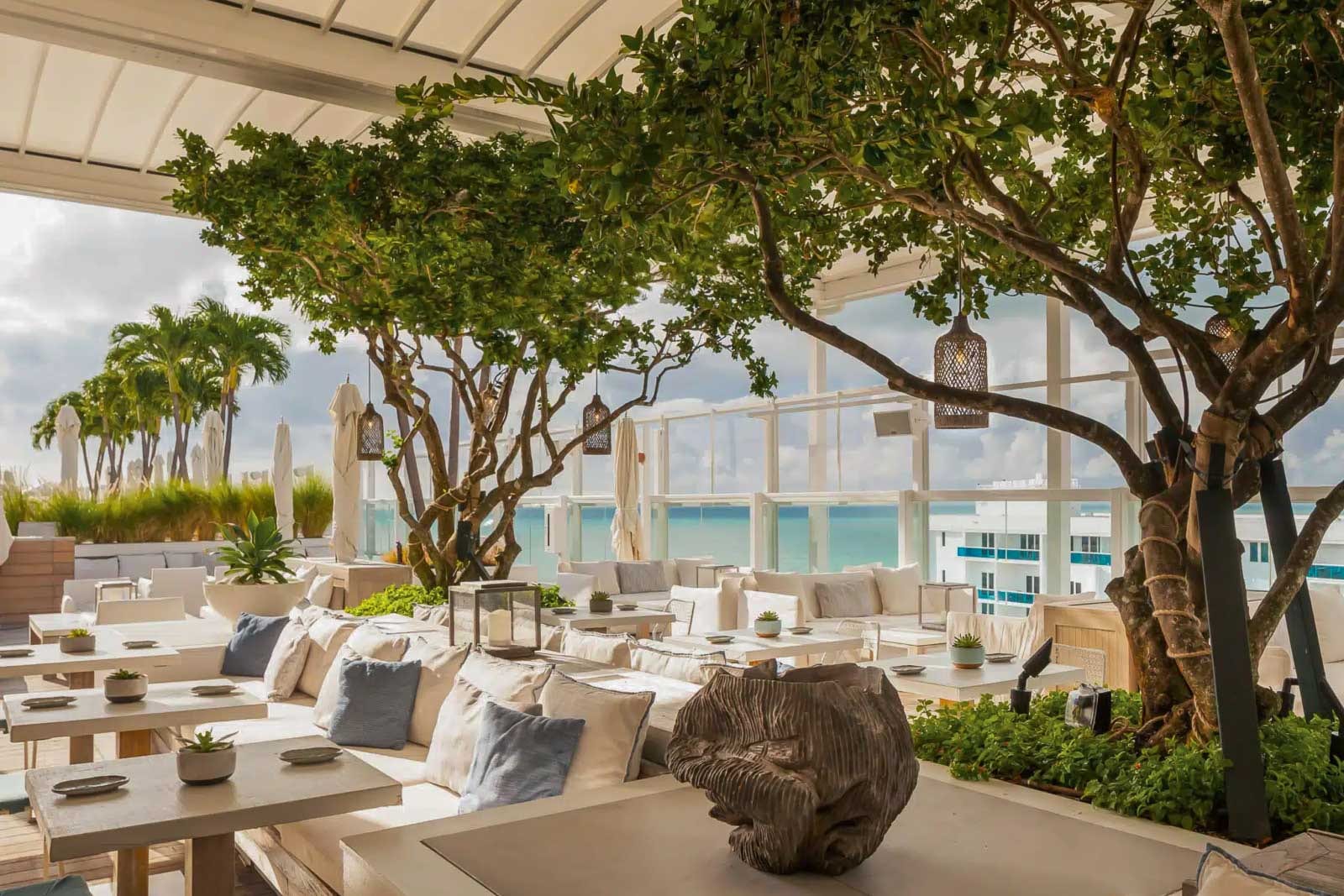 Fans of hotelier Ian Schrager will recognize all his hallmarks here—an iconic spiral staircase, tons of potted palms—but there are plenty of nods to Miami too, like oceanfront bungalows with private plunge pools and a restaurant from Jean-Georges Vongerichten that draws flavor inspiration from Latin America, Spain and the Caribbean. For fun out of the sun, check out the neon-lit Basement Bowl & Skate, which has a four-lane bowling alley and indoor ice-skating rink.