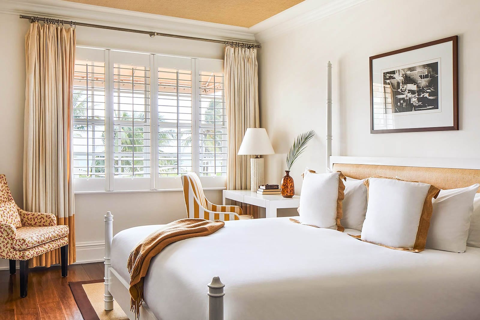 In a sea of flashy Art Deco divas, this prim 1942 mainstay’s “Florida-Georgian” style is the mashup you didn’t know you needed. Behind its stately columns and shutters, rooms are unfussy and bright, with colorful accent walls and black-and-white photos, and the family-owned property is known for its CEOs (canine executive officers), whom you might meet during a stay. (Your own dogs are welcome, too.)