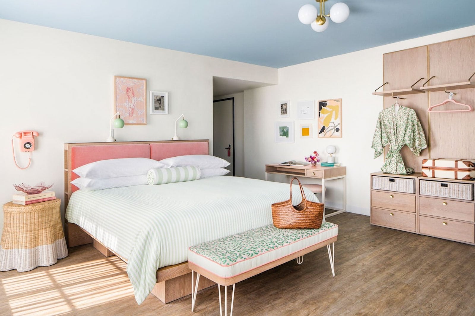 Reopened in 2022 after a $50 million renovation, this hotel is so overflowing with tropical vegetation that it looks like the building has been left to nature. The botanical blitz doesn’t stop there: jungle-themed murals back the pool by the rooftop rum bar, and in the jewel-tone guest rooms, claw-foot bathtubs cozy up to other quirky touches, including record players and even a piano.