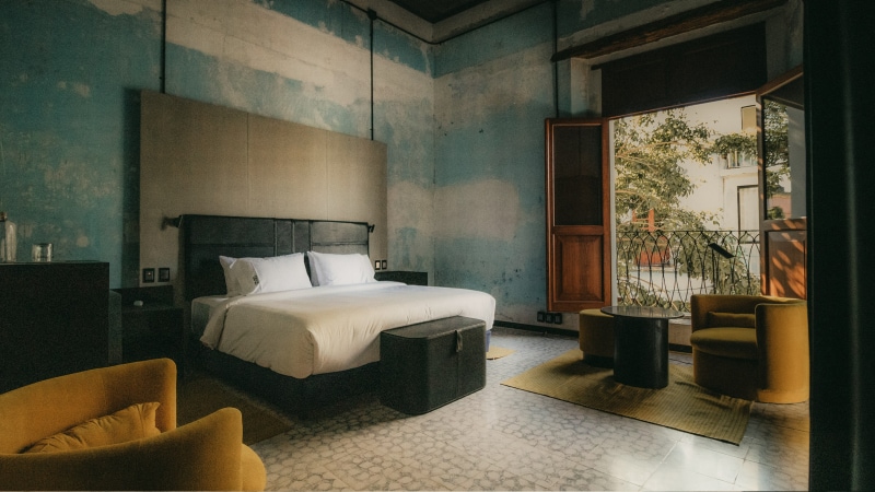 The bones of this building—a former convent constructed in 1529—are some of the oldest in the colonial-era city, but interiors here lean away from Baroque adornment and toward a breezy, midcentury-inspired minimalism. In the nine guest rooms, you’ll find rattan headboards, handwoven rugs from Teotitlán del Valle and macuil wood furnishings from a Oaxacan carpenter that may have you googling “how to ship home a chair.” But as dreamy as the rooms may be, Casa Antonieta is all about its public spaces: You could spend hours lazing about in Muss Café, which serves organic coffee grown in the Oaxacan hills, or at the rooftop Amá Terraza, where you can sip Mexican natural wines while watching the sunset.