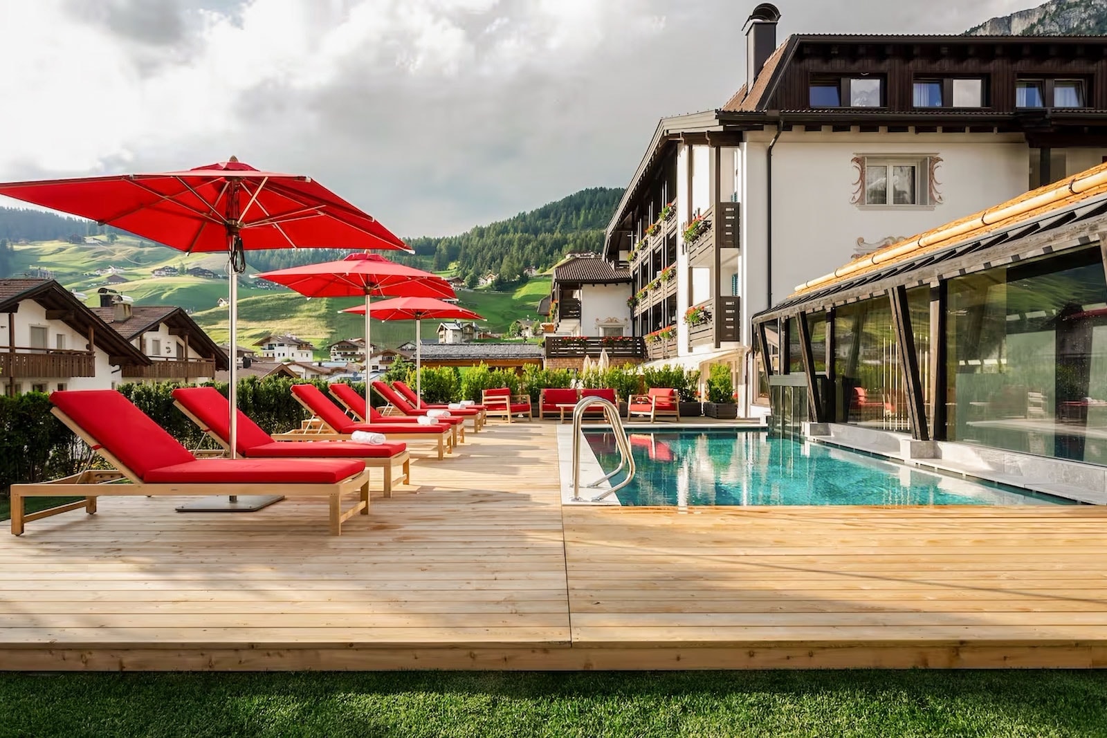 This cozy bolthole in the tiny village of San Genesio, near the larger city of Bolzano, is a paradise for horse lovers. (The region is the home of the Haflinger—a gentle, friendly breed of horse that is perfect for beginner or nervous riders.) Lessons and half- and full-day rides among spruce and larch are available from nearby stables, as are horse-drawn carriage rides. Meanwhile, hikers have access to nearly 500 miles of trails, and there are seven golf courses within an hour’s drive. Back at the hotel, all the requisite Dolomites amenities await: an infinity pool, a forest spa (accessed by a meditation trail) and a restaurant serving seasonal delicacies. Saltus is big on sustainable travel and even offers a 5% discount to guests who arrive by train.