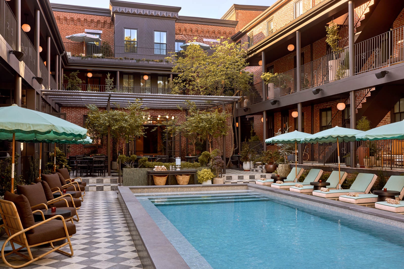 Often compared to Brooklyn for its gritty but lively vibe, Fishtown got another dose of cool when Anna & Bel opened in 2024. Inhabiting what was once a boardinghouse for single women dating back to the 1760s, the reimagined retreat integrates past and present seamlessly. The original staircase stands alongside checkered floor tiles and an impressive collection of works by female artists, while the superb restaurant, Bastia, and bar, Caletta, bring Mediterranean flavors to Philadelphia. There’s even a courtyard pool for sips and dips in the summer.