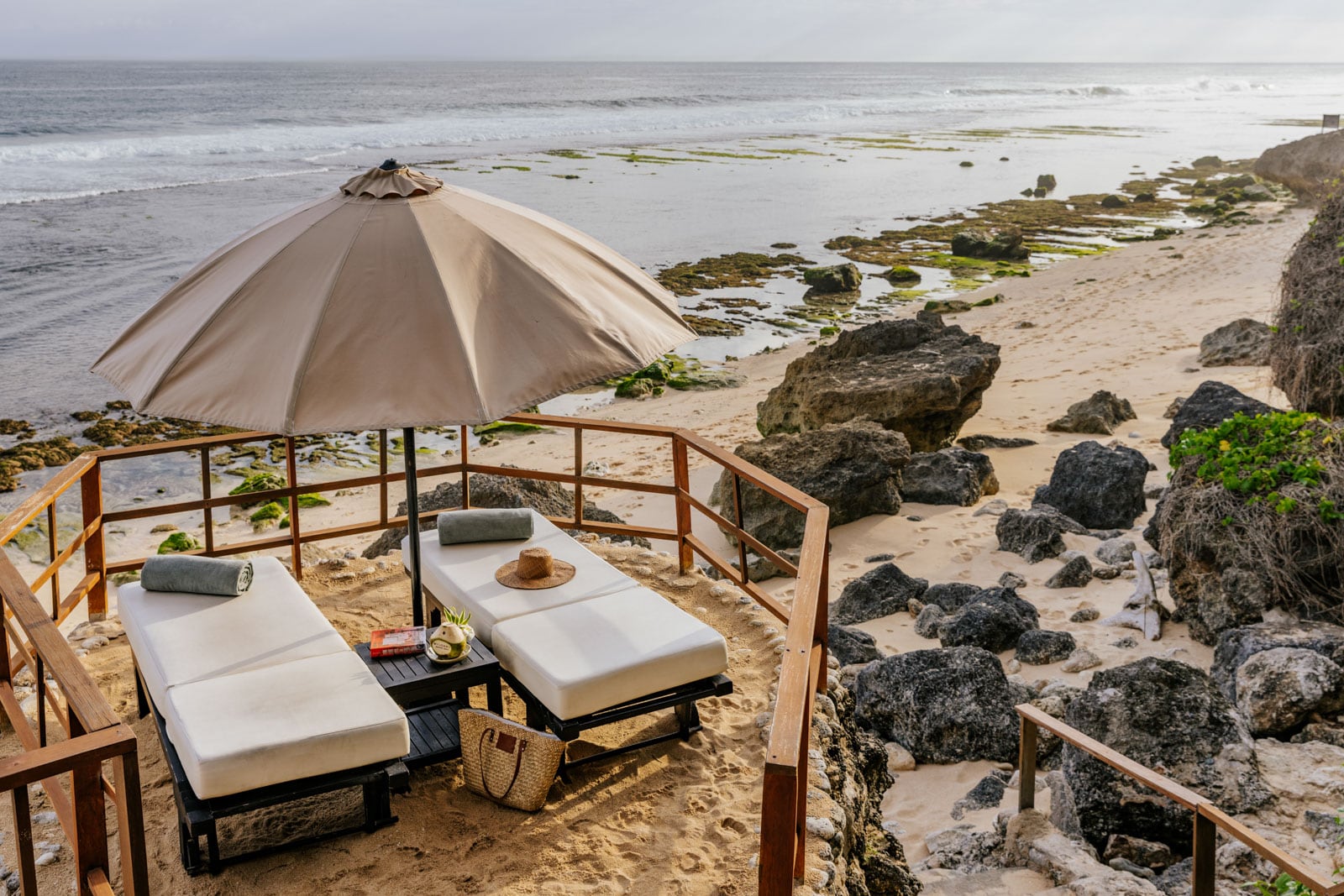 Bvlgari sits on one of southern Bali’s prettiest stretches of coast. Steep limestone cliffs plunge to a cappuccino-colored beach, and the Indian Ocean rolls into a blue-on-blue infinity—one glimpse, and you’ll understand why Uluwatu (the region where the hotel is located) translates to “land’s end.” If you do feel the need to escape this perfectly manicured bubble, you’re a short taxi ride away from vibey Padang Padang Beach or the postcard views of the cliff-top Uluwatu Temple, which is gorgeous (but crowded) at sunset.