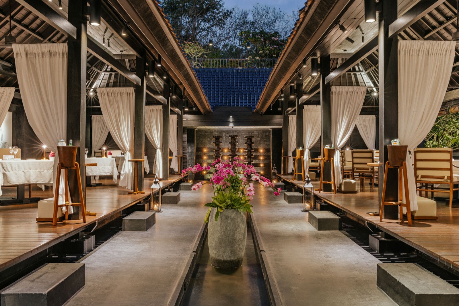 Every evening, aperitifs are served under the thatched roof of The Bvlgari Bar while the sky fades from brilliant orange to peachy pink. This daily ritual is a perfect prelude to dinner at Il Ristorante – Niko Romito, where almost-too-pretty-to-eat degustation-menu dishes fuse Italian flavors with seasonal Balinese produce (think: rose-shaped beet with smoked-mozzarella sauce, or truffle-dusted local snapper). At lunch or dinner, the Indonesian dishes at Sangkar Restaurant, a more casual alternative to Il Ristorante – Niko Romito, deliver a spice-heavy punch (you’ll want to sample the melt-in-your-mouth beef rendang). A terrace table is an automatic yes, but don’t miss an opportunity to pop inside and check out the traditional Balinese rooster cages that double as sculptural lighting.