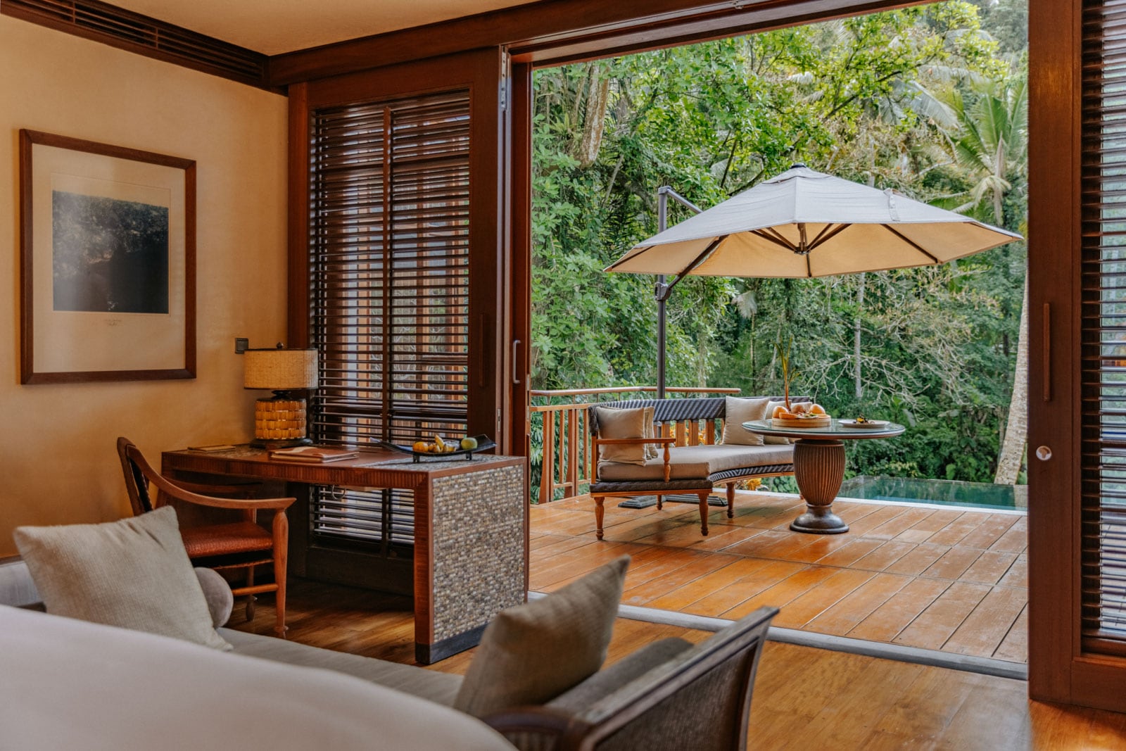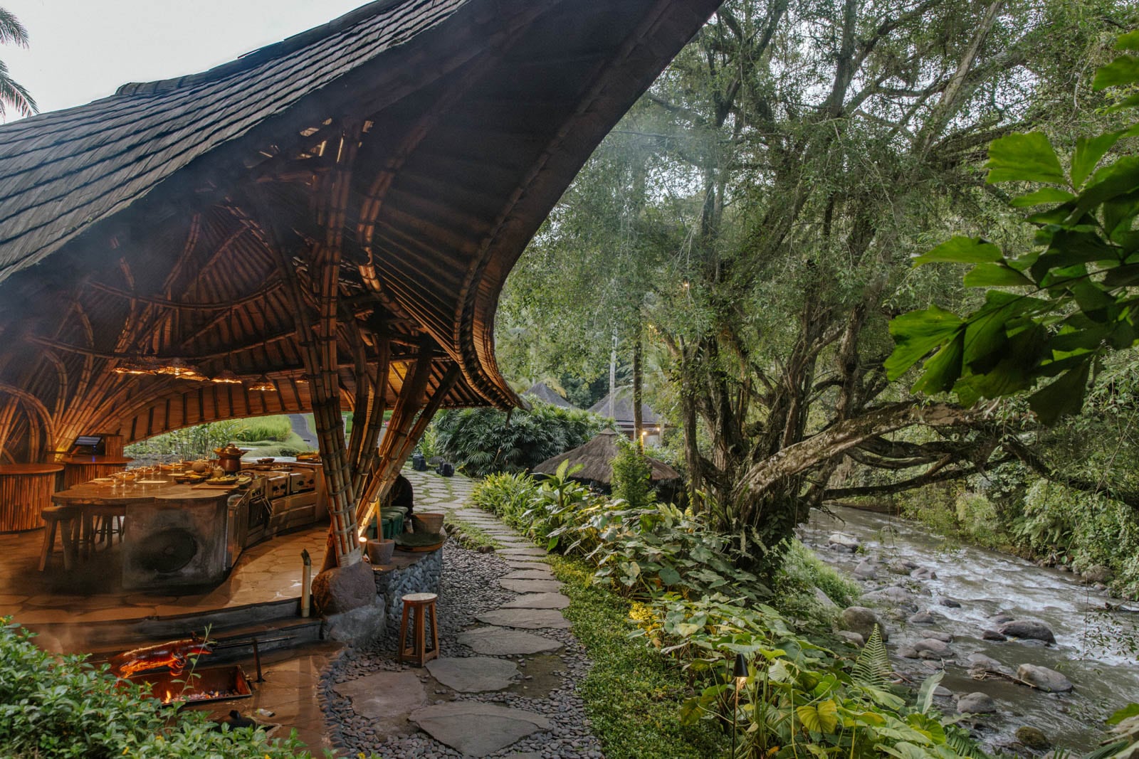 For the full tropical fantasy, though, you’ll want to book one of the villas, of which there are 42 around the resort. They have similarly modern Balinese interiors but offer a lot more privacy thanks to the thick gardens around their outdoor decks, open-air showers and plunge pools. Yours might be half-embedded in the sloping landscape with a stone stepwell leading to the front door, and a thatch-covered yoga pavilion on its roof for a lovely early-morning session. Score one of the riverfront villas at the bottom of the valley to have the Ayung River lull you to sleep at night.