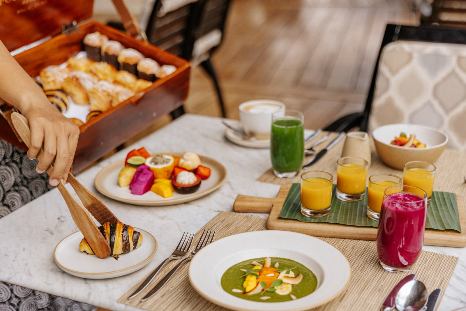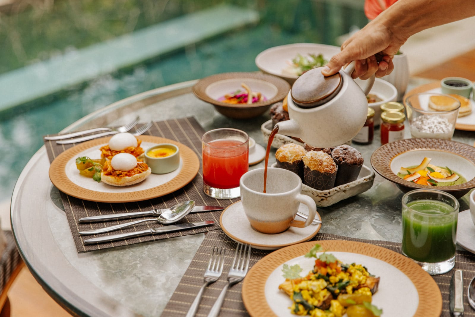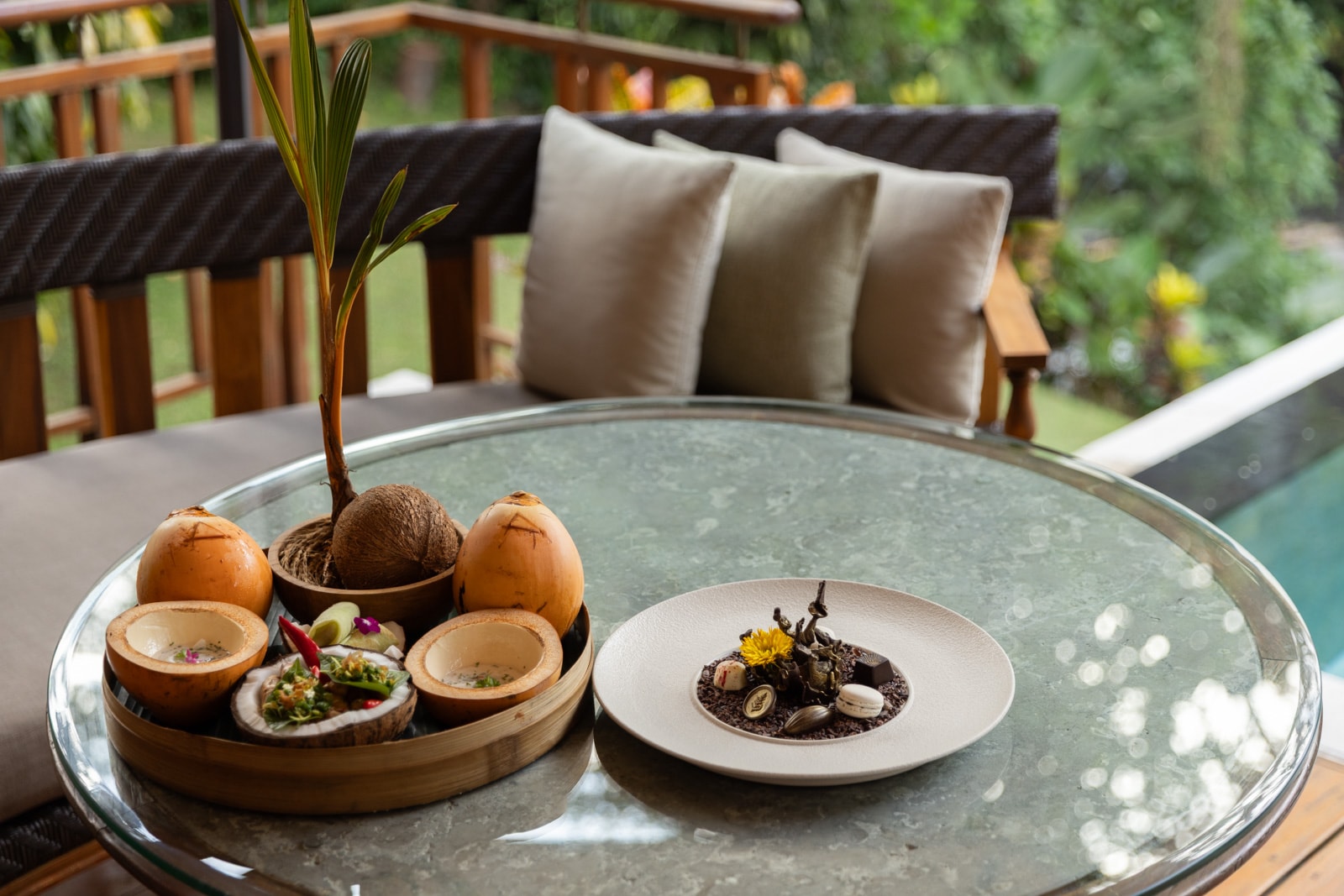 Breakfast and lunch are more casual affairs. For the former, head to Ayung Terrace and sit on the balcony for dreamy views of the valley draped in mist. Order a jamu shot (a local herbal tonic made from turmeric and ginger) for a throat-scorching energy boost, and don’t miss the chai-spiced granola. In the afternoon, score a lounger at the riverside pool (shaped exactly like the rice paddies that were there before) for pizzas, pastas and meze platters from the adjoining Riverside restaurant.