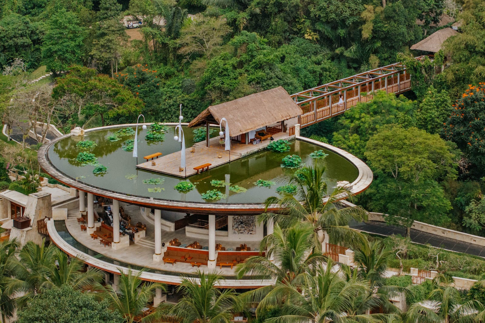 You know your vacation has started when: You have your luggage whisked away upon arrival, and you cross the bridge, bag-free, toward a giant lotus pond that seemingly floats above the valley. At first, you see nothing but jungle. The rest of the resort appears, piece by piece, only as you descend the stairs to the lobby desk.