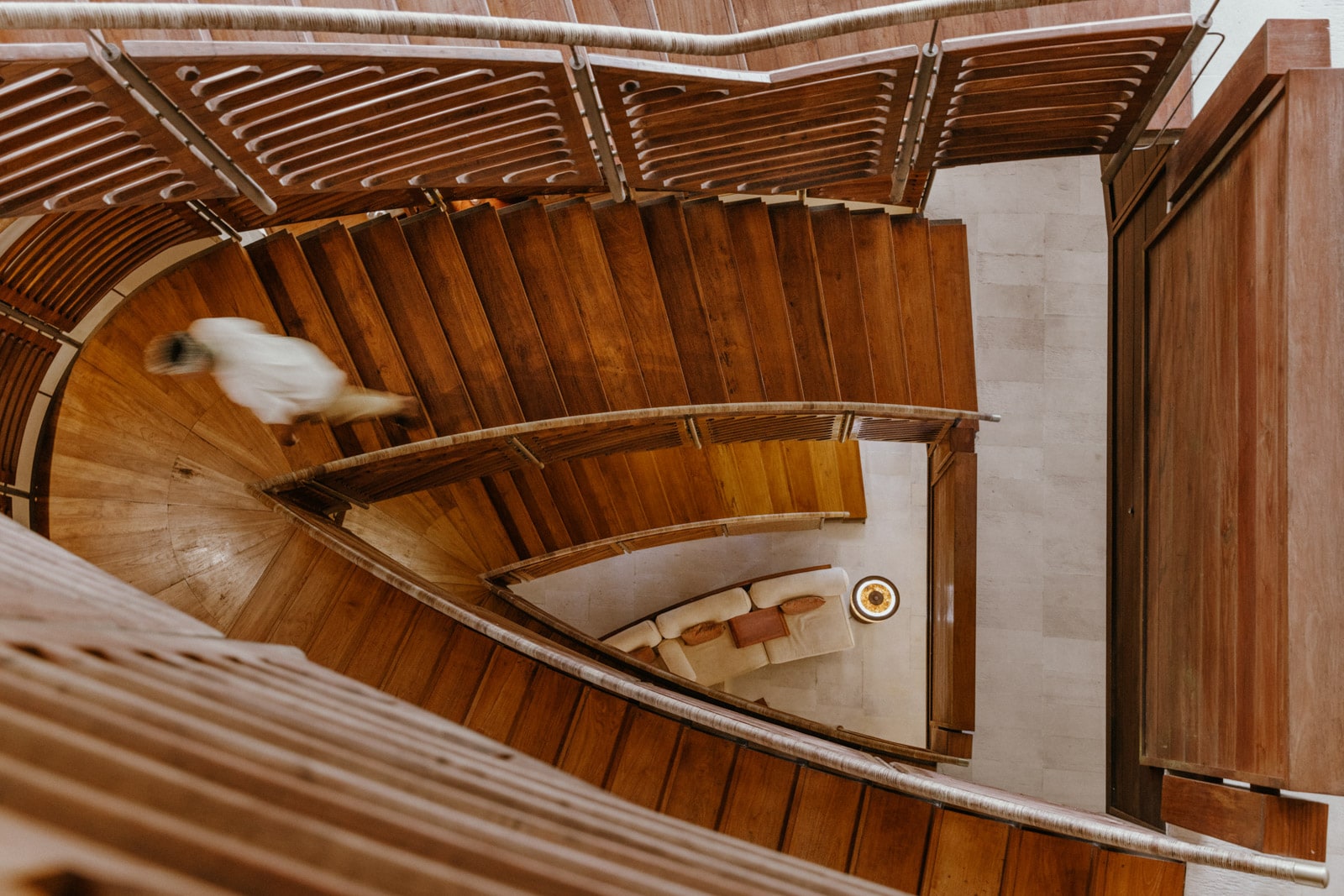 The one- and two-level suites take over the two wings that jut out from either side of the central pavilion. Their look is brilliantly Balinese: lots of wicker, polished teak and desks, and bedside tables bedecked in shimmery mosaics of coconut shells and mother-of-pearl. Windows come covered with sliding louvered shutters in lieu of curtains (so bring an eye mask if you require total darkness), while creamy terrazzo and dark marble floors keep the bathrooms delightfully cool in the sticky heat.