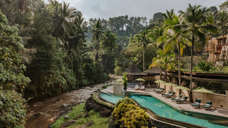 Past the trinket shops on Ubud’s main drag, down an unassuming alley and across a teakwood suspension bridge that skims the tops of coconut trees, is a magical world. It’s Four Seasons Resort Bali at Sayan, nestled in Sayan’s bowl-like valley.