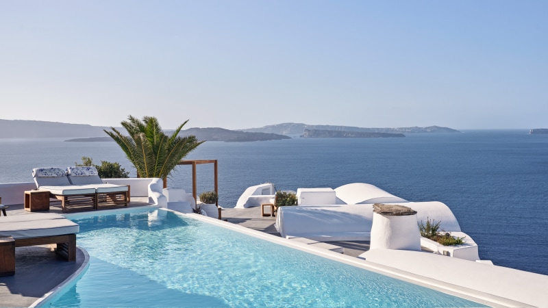 Santorini is as popular as it’s even been, and Oia is the island’s darling, so expect crowds. You can try to dodge them by traveling during the shoulder season (May and October), when days are still swimmably warm. Note that like most resorts on the island, Katikies Santorini closes for the winter, between mid-November and late March.
