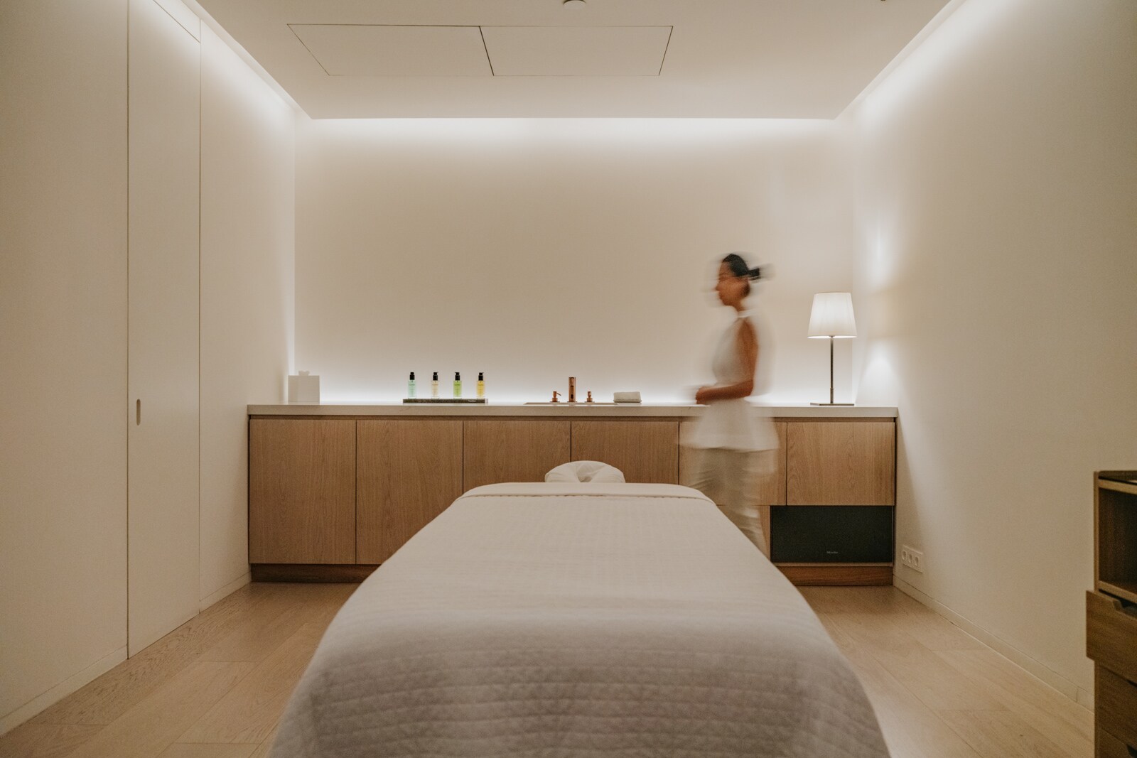The spa. After a long afternoon of sightseeing and strolling, there’s no better way to shake off the day than a visit to this moody space, whose warm neutral color scheme and interplay of soft whites and rich wood tones feels like a softer echo of the chiaroscuro in the hotel’s entryway. Sip an herbal infusion in the lounge, flit between the sauna and steam room, and then kick back for the Spanish Citrus Radiance Ritual, a full-body scrub and massage infused with vitamin C and rose hips.