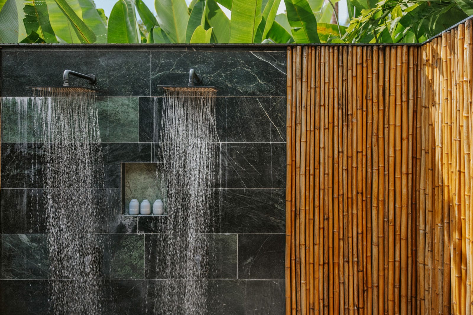 The design detail you won’t stop coveting: The only thing better than an outdoor shower is an outdoor shower big enough for two, with dual shower heads.