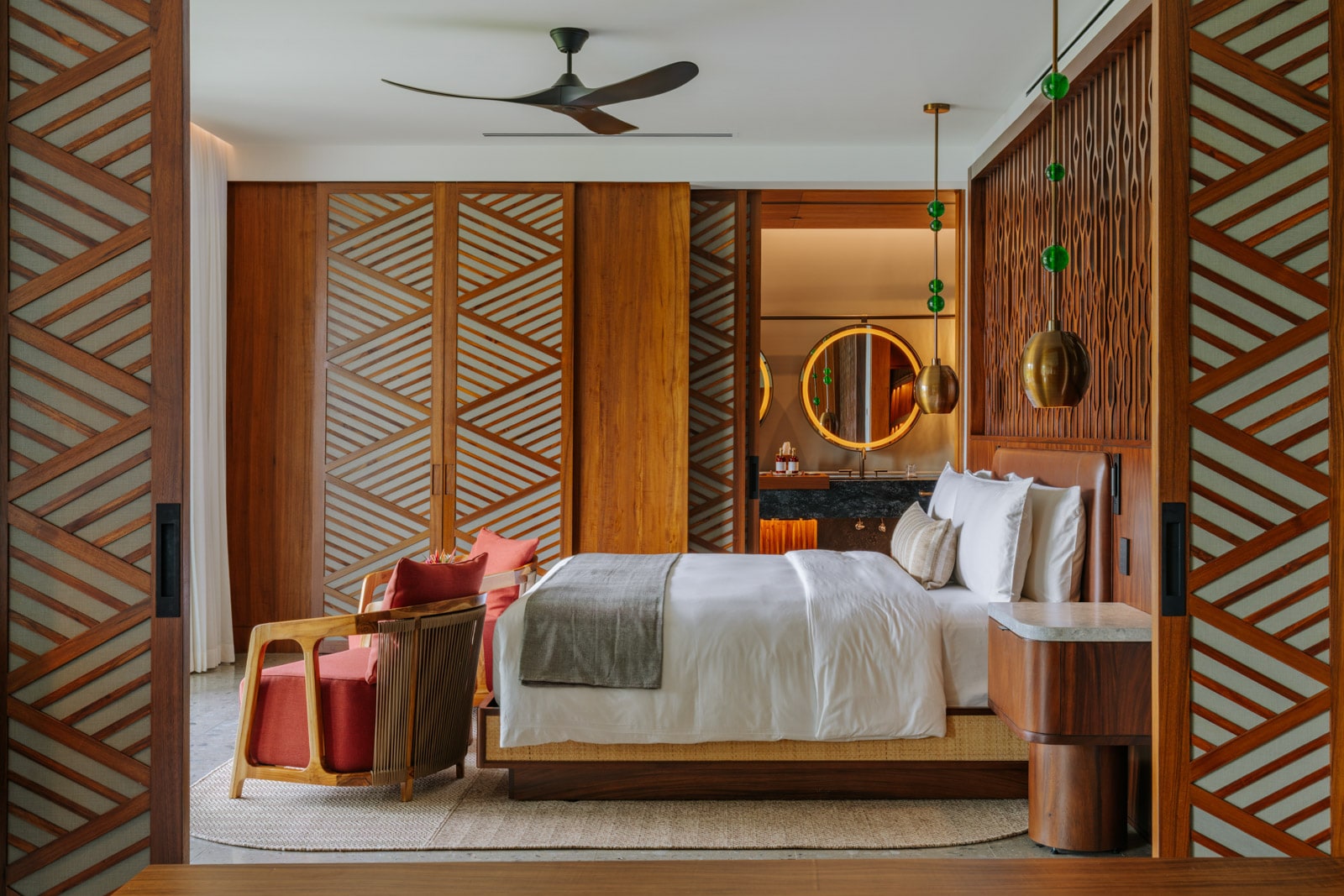 From single-bed accommodations to private villas, each guest room zeroes in on warm, calming tones and traditional patterns.