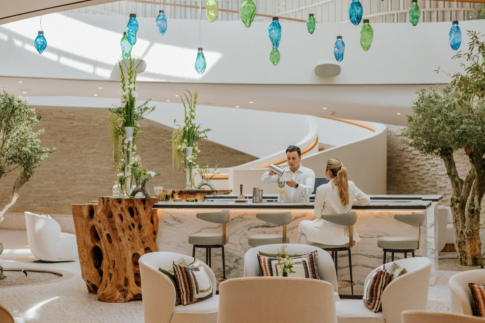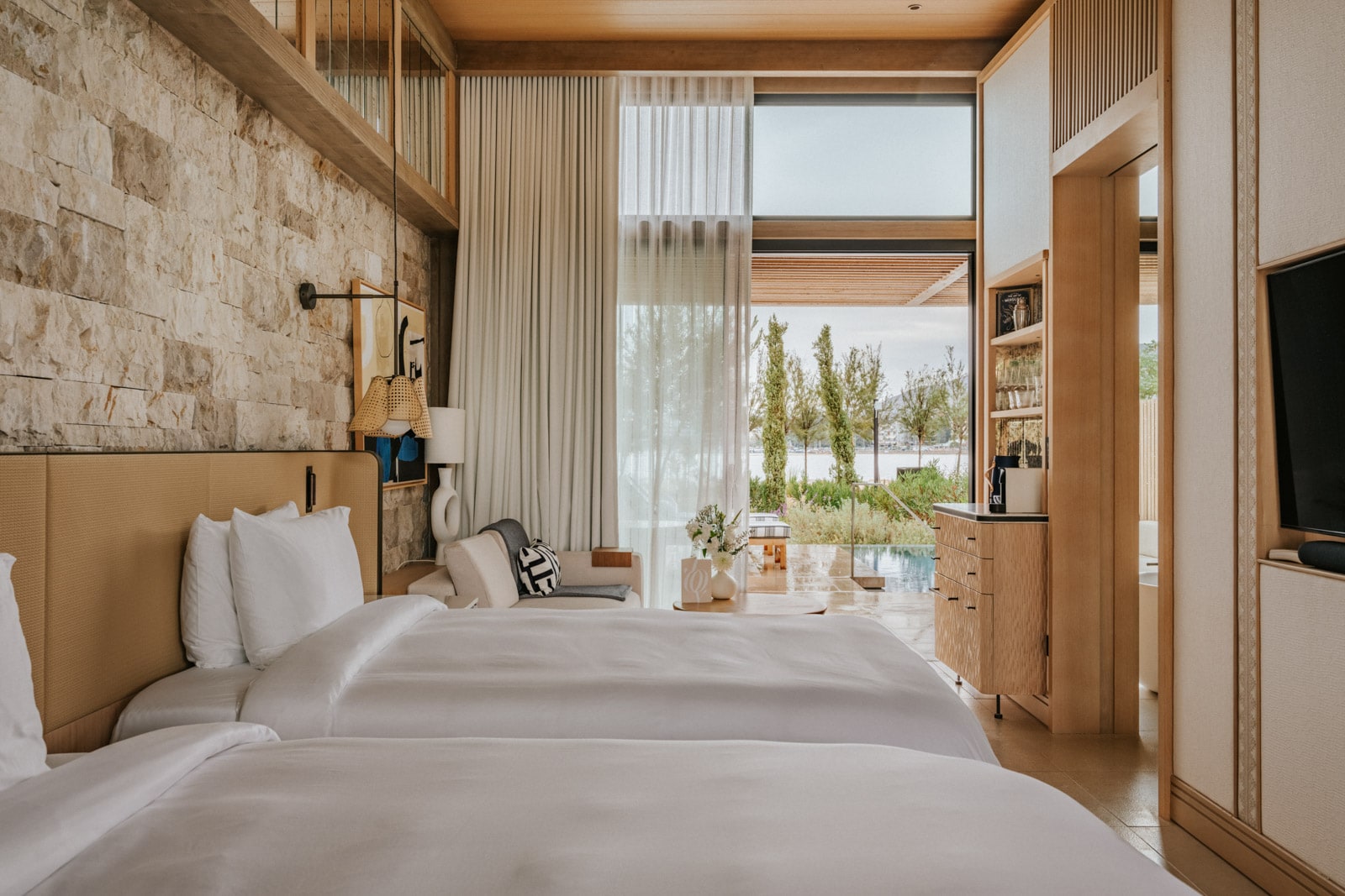 The property is shaped by its location in other ways, with Greek marble countertops, wood furnishings carved from olive trees and locally made linens, and service is an extension of this vibe: relaxed but attentive, with a fixed attention to detail. Your arrival is celebrated with the ringing of a bell (each O&O outpost has its own welcome ritual), and soon, you’re spirited to your room via chauffeured buggy. By this point, you’re already well acquainted with the hotel team, whom you’ve been in contact with since you booked the room—and now, you’re assigned a cadre of butlers, whom you can communicate with 24/7 on WhatsApp for requests that range from in-bungalow room service to squeeze-in treatments at the spa. You’ll find yourself constantly surprised at how quickly they arrive and respond.