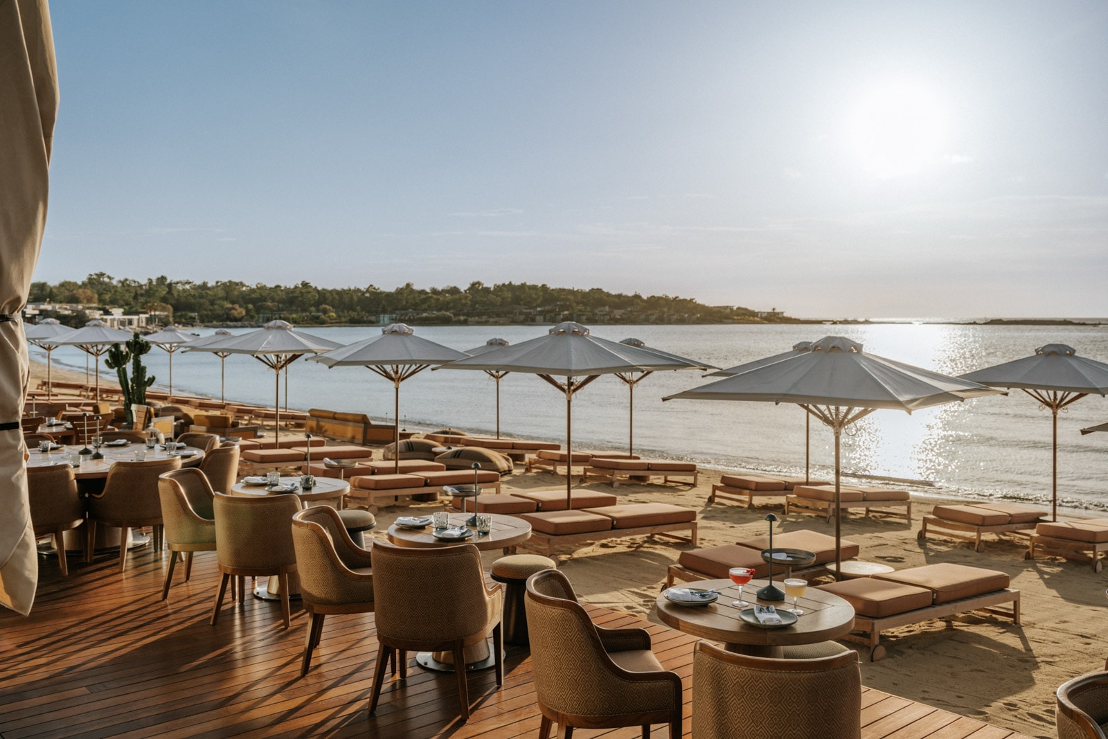 The hotel is in Glyfada, which serves as the unofficial heart of the Athens Riviera, just 30 minutes outside the Athens city center. The area is known for its beaches and beach clubs, boutique shops and seaside restaurants. It’s also a 15-minute drive from the future Ellinikon development. You’ll find great off-property dining like Mediterranean-Asian fusion at Bungalow 7 (located next door to the hotel) and classic Greek cuisine at Ark. Guests can also arrange transportation to Aesthesis’s sister property, One&Only Kéa Island, with a 45-minute speedboat ride.