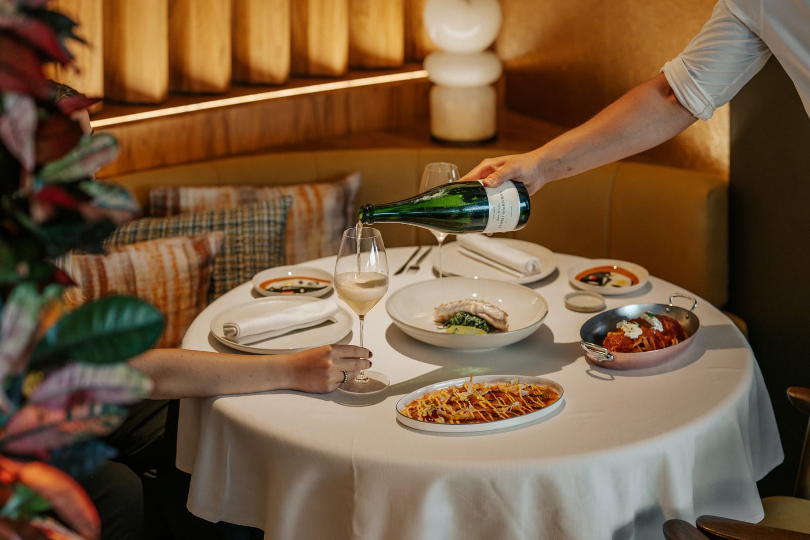You can enjoy breakfast through dinner at Ora by Ettore Botrini, in the hotel’s main Aesthesis building. Come dinnertime, the restaurant embraces its Mediterranean roots with dishes like tabbouleh and tzatziki, lamb fricassee and the catch of the day smothered in a smoky tomato sauce and eggplant purée.