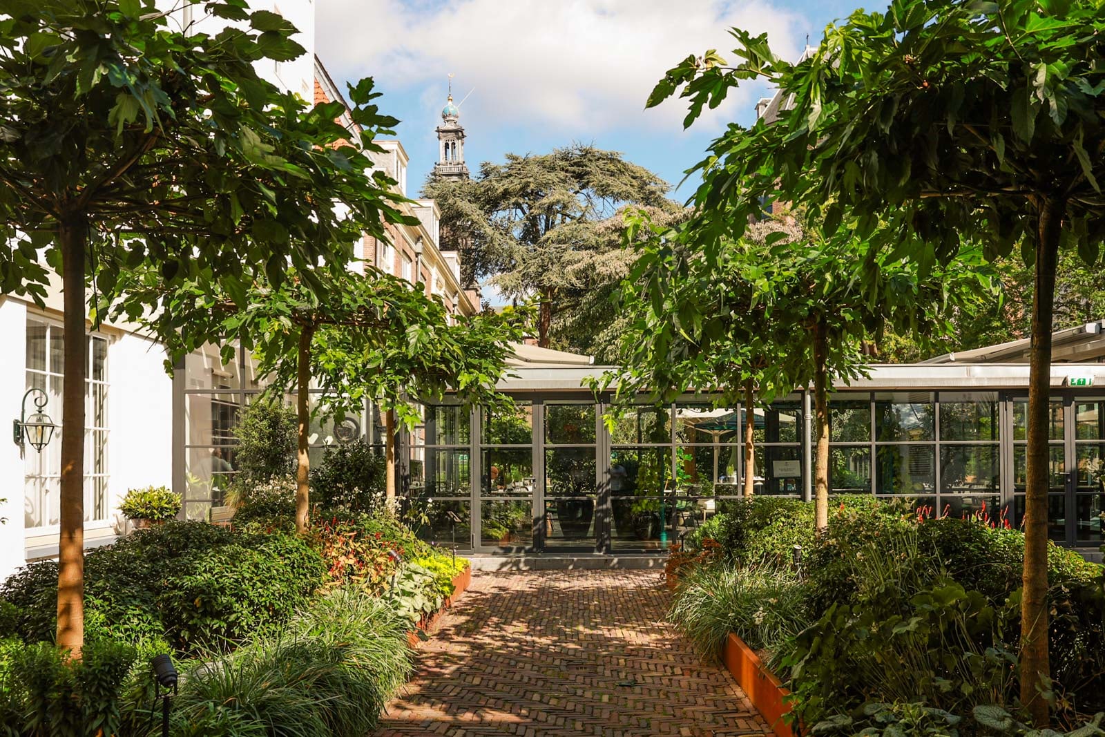 The only reminder you’re in the center of the city might be the occasional bell toll from Onze Lieve Vrouwekerk church, which you’ll hear faintly while taking your coffee in the hotel’s leafy garden each morning.