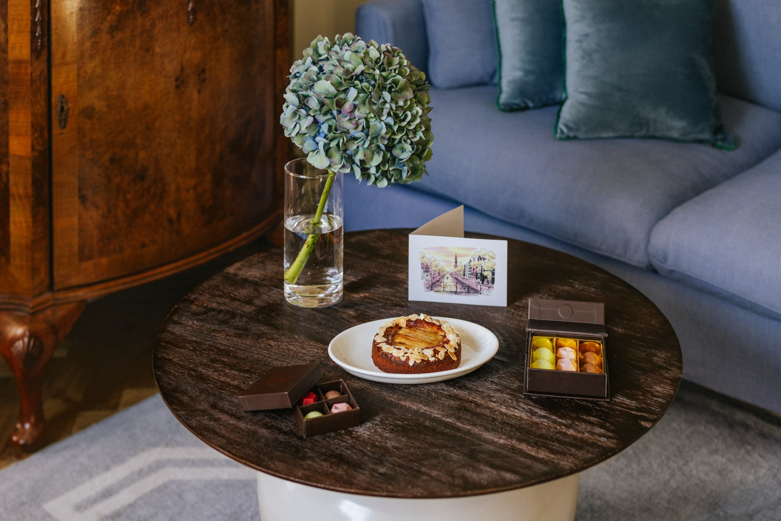 Rooms and suites are thoughtfully designed, mixing plush furnishings like vintage-feeling custom drink trolleys with luxury touches like silky tea bags featuring the hotel’s exclusive blend in Dutch porcelain cups.