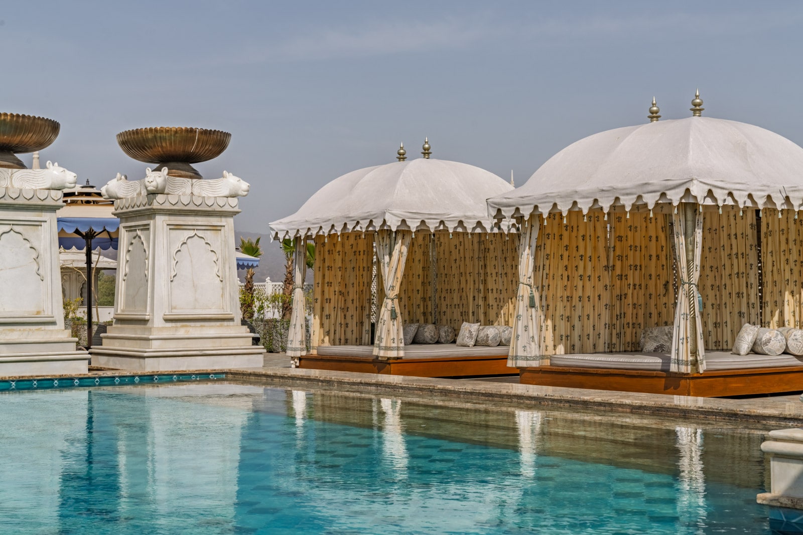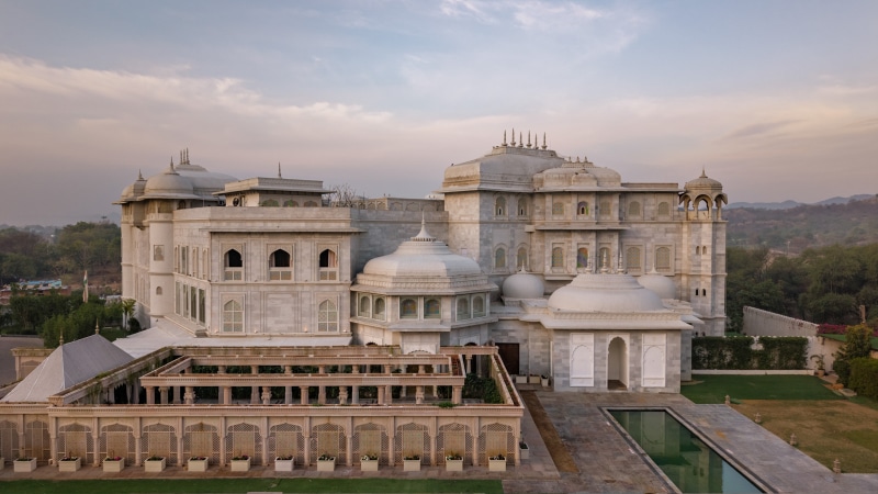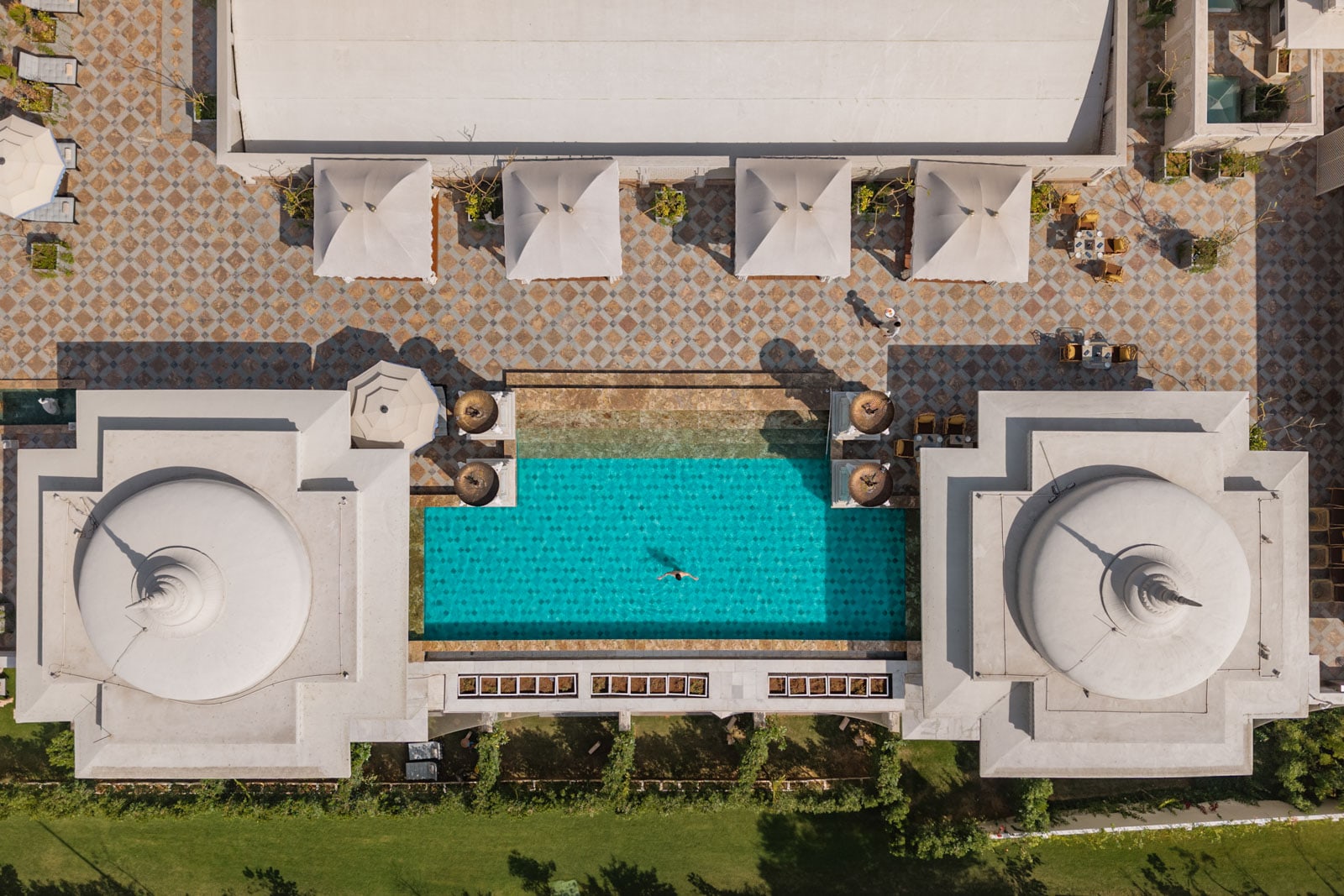 In Jaipur—one of India’s first planned cities, known for its royal heritage and dazzling architecture—there’s no shortage of opulent, palace-style hotels. Still, Raffles Jaipur, an intimate stay on the outskirts of the city, is a sparkling-white gem surrounded by the Aravalli mountains.