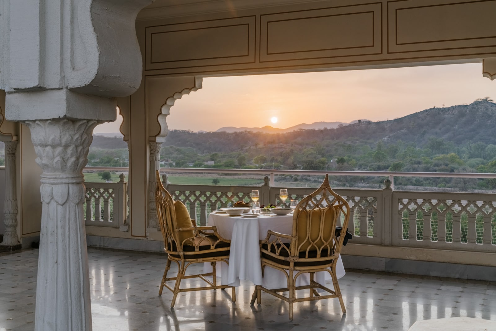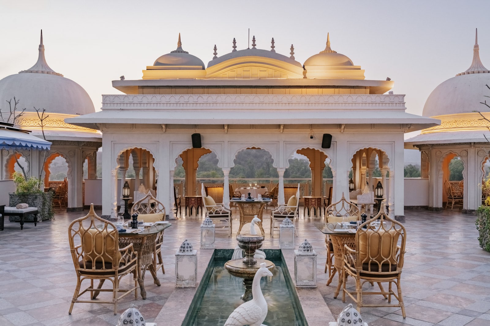 As you make your escape from Jaipur’s vibrant old city, the marble residence snaps into view. The property is modeled after the women’s quarters of a palace, called a zenana, and filled with ornate detail. (This is where the queen and her court would spend most of their time, just out of public view, so it was traditionally just as decorative as the king’s quarters.)