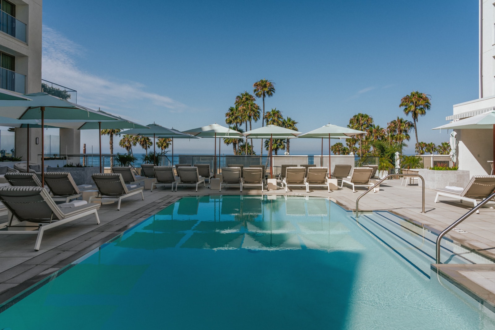 You can choose from city views, pool views and oceanfront views, and if you really want to maximize the hotel’s location, you can upgrade to a 720 Oceanfront King, with a sprawling balcony kitted out with a dining table, lounge seating and a firepit you can turn off and on at will. Parents traveling with kids will also rejoice at the hotel’s 49 connecting rooms, a mix of double queens and single kings, which can be guaranteed upon booking. Suites offer as much as 3,200 square feet, and vary in layout—some are bi-level, with proper dining rooms, living areas and balconies up top, and a bedroom, lounge and outdoor entertaining space below, while others claim corners of the property, and feel more comparable to condos. (The hotel’s top billing, the Santa Monica Suite, is a mind-boggling 3,200 square feet, with a single bedroom but wings that house a pool room, a blacked-out media room and a primary bathroom capacious enough to rival most New York City studio apartments.)