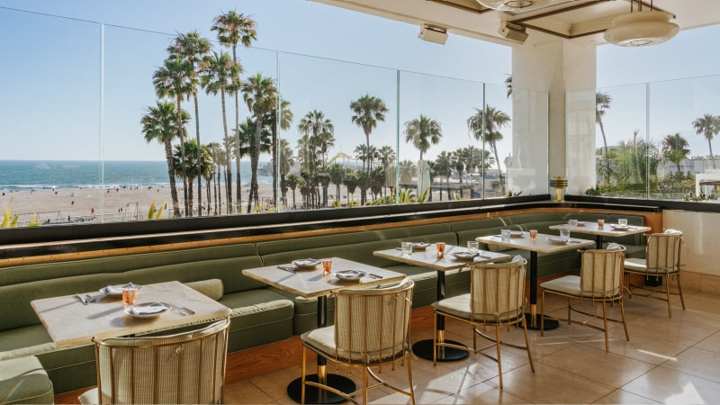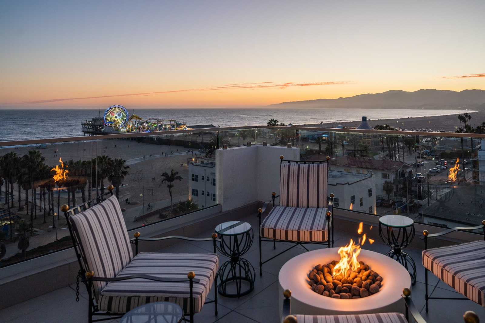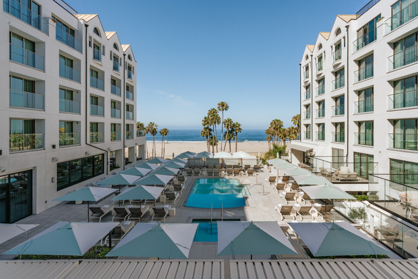 The hotel sits within striking distance of the Santa Monica Pier, occupying arguably the most prominent location on the city’s strip. It’s so close to the landmark, in fact, that from some rooms, you can see its neon-lit Ferris wheel and roller coaster from your bed. You’re just across the street from the ocean, and you can easily take the public biking and walking path that cuts in front of the hotel south to Venice Beach, a route that’ll bring you past neighboring properties like Shutters on the Beach and Hotel Casa del Mar, and farther on, souvenir shops, tattoo parlors and burrito spots.