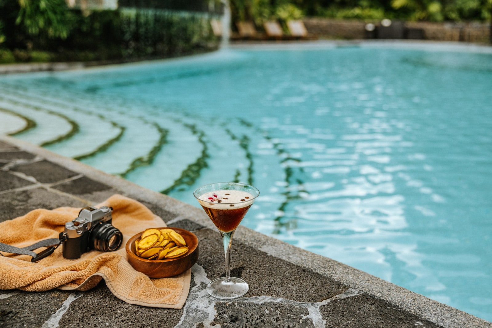 The Screwball Espresso Tini, made with peanut butter whiskey, is best enjoyed poolside.