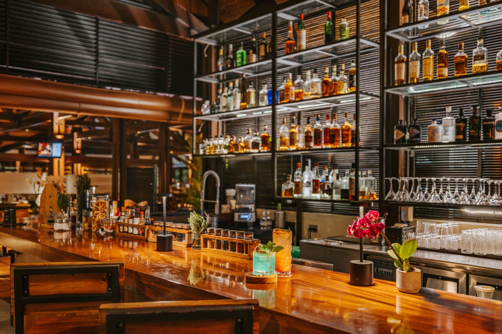 Quench your thirst at any of four watering holes, which include the adults-only Shangri-La Gardens at the thermal springs, the swim-up Agua Ardiente Pool Bar, Caña Brava lobby bar and Bosque Bar, where you can expect cocktails like the Smoky Volcano, a delightful concoction of tequila, mezcal, orange, pineapple, coconut and smoked cinnamon.