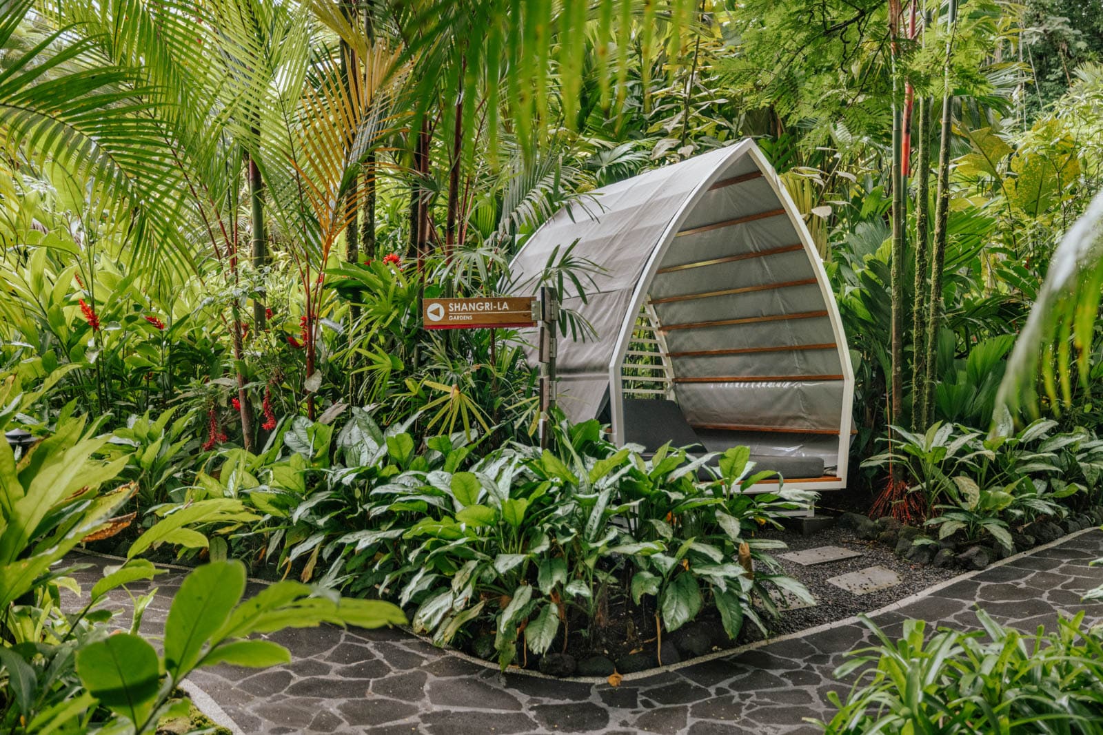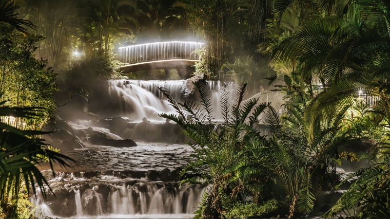 The thermal pools vary in temperature, culminating in the 100-degree pool near the adults-only Shangri-La Gardens area.