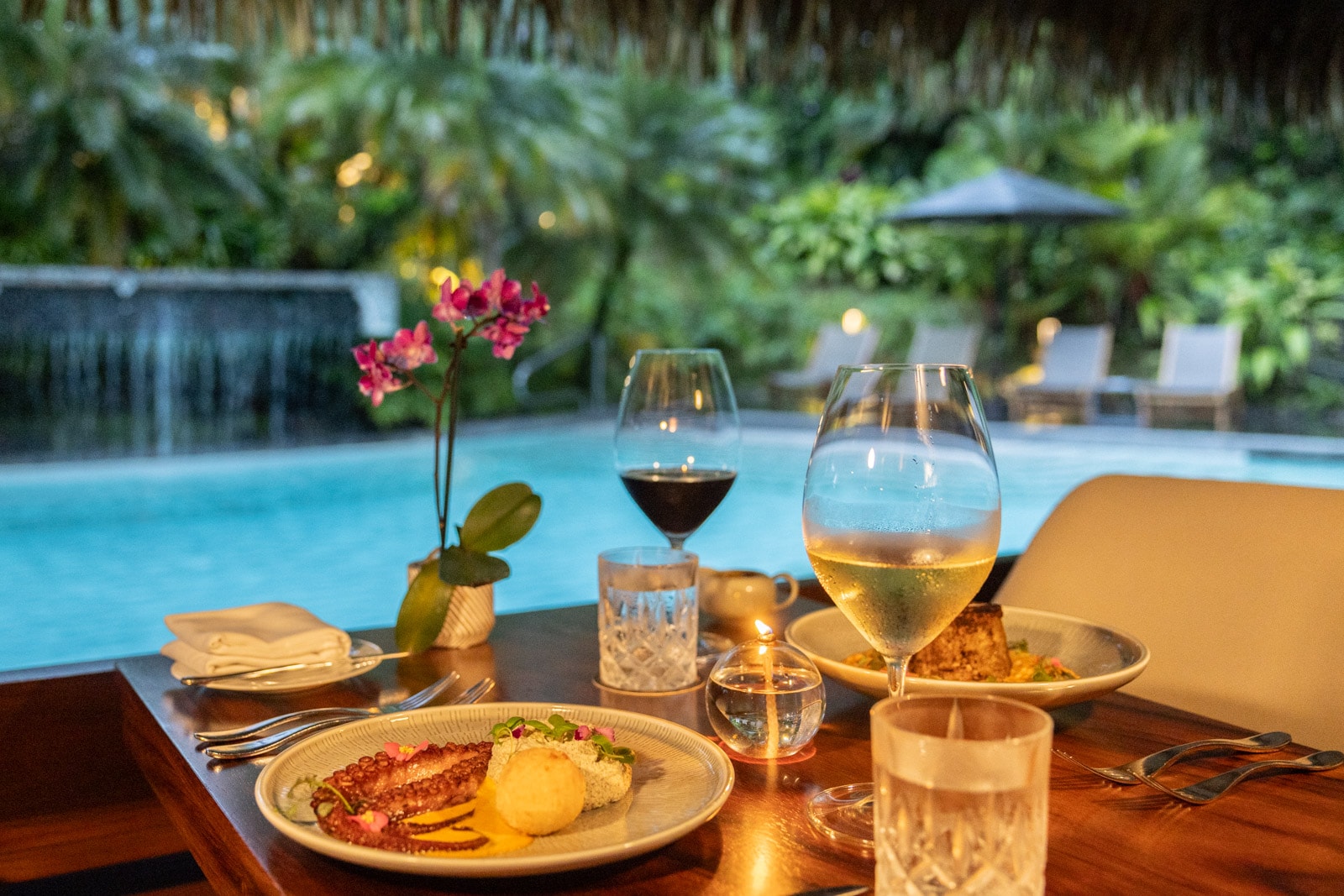 The not-so-secret spot everyone’s talking about: The Ephemeral Table is a candlelit private dining experience for two to 10 people, hosted in one of two thatched-roof bungalows tucked into the resort’s foliage. Although food preferences and restrictions are taken into account, the six-course menu with wine and beer pairings is a surprise, created by a chef who prepares everything in front of you in the bungalow’s open kitchen.