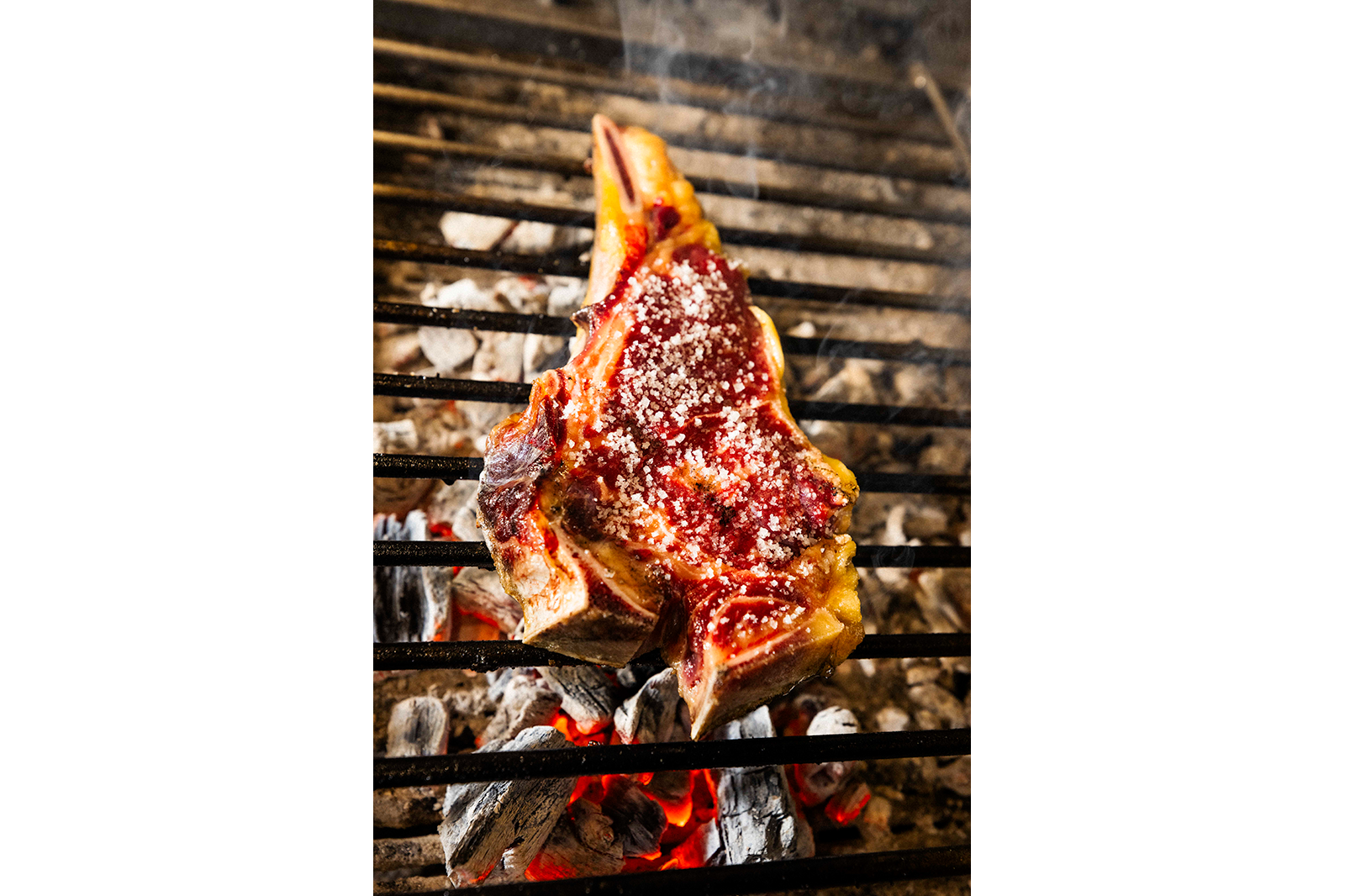 The meal opened with slices of chorizo, so fatty and smoky they melted like salted butter. Toasted bread draped with tuna, brightened just enough with tomato and grated ginger. Scallops were presented in an “Americano” version, tinged with tomato and just enough chile to keep you leaning in for another bite. Then there was the steak: a Galician milk cow, seven years old, aged for 30 days, seared over embers until the crust snaps and the center yields like velvet.
