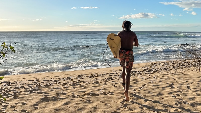 He likes the area’s black-sand beaches, which have fewer crowds and offer what he calls an organic Costa Rican experience. Outside of surfing, you can also take dips in the country’s hot springs and go on waterfall hikes.
