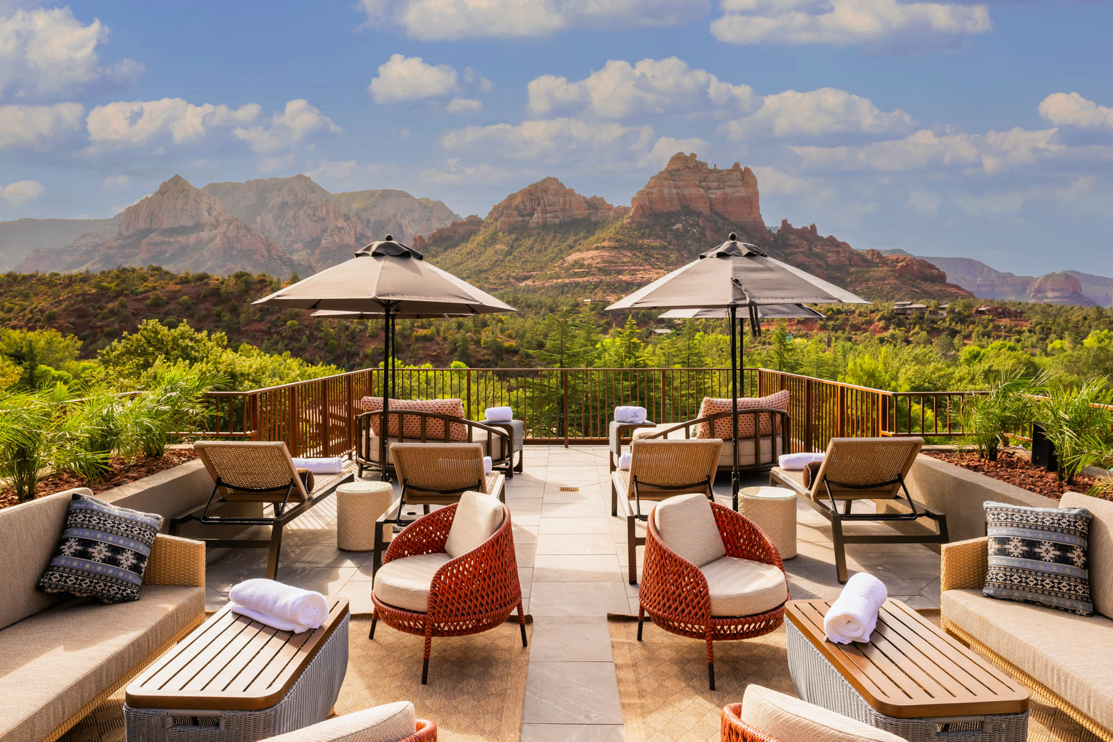 Soak up the sun and the red rock views on the deck of the Duck Pond pool at L’Auberge de Sedona. (Photo courtesy of L’Auberge de Sedona)