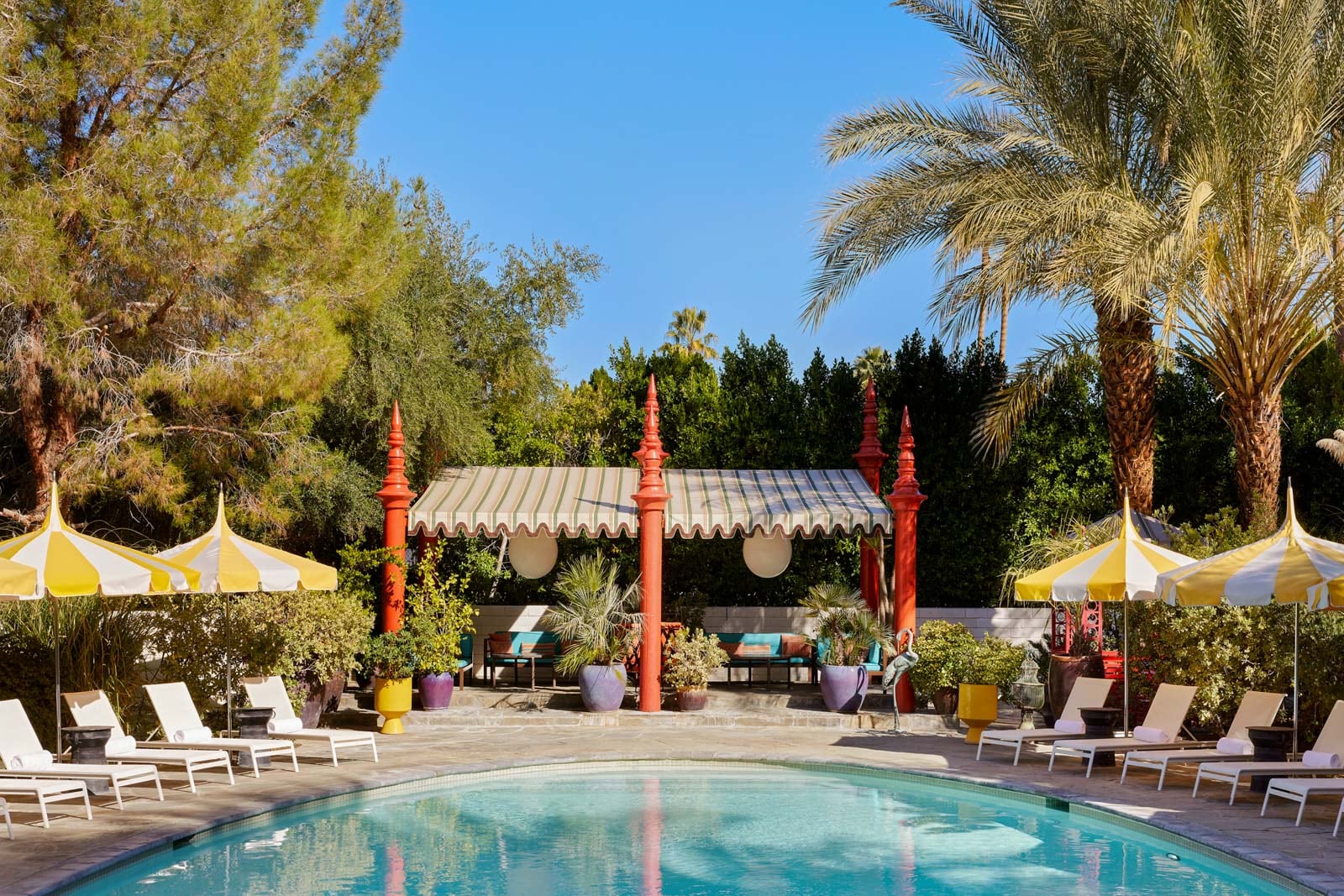 The Gene Autry Pool at Parker Palm Springs stays open until midnight—if moonlight swims are also your thing. (Photo courtesy of Parker Palm Springs)