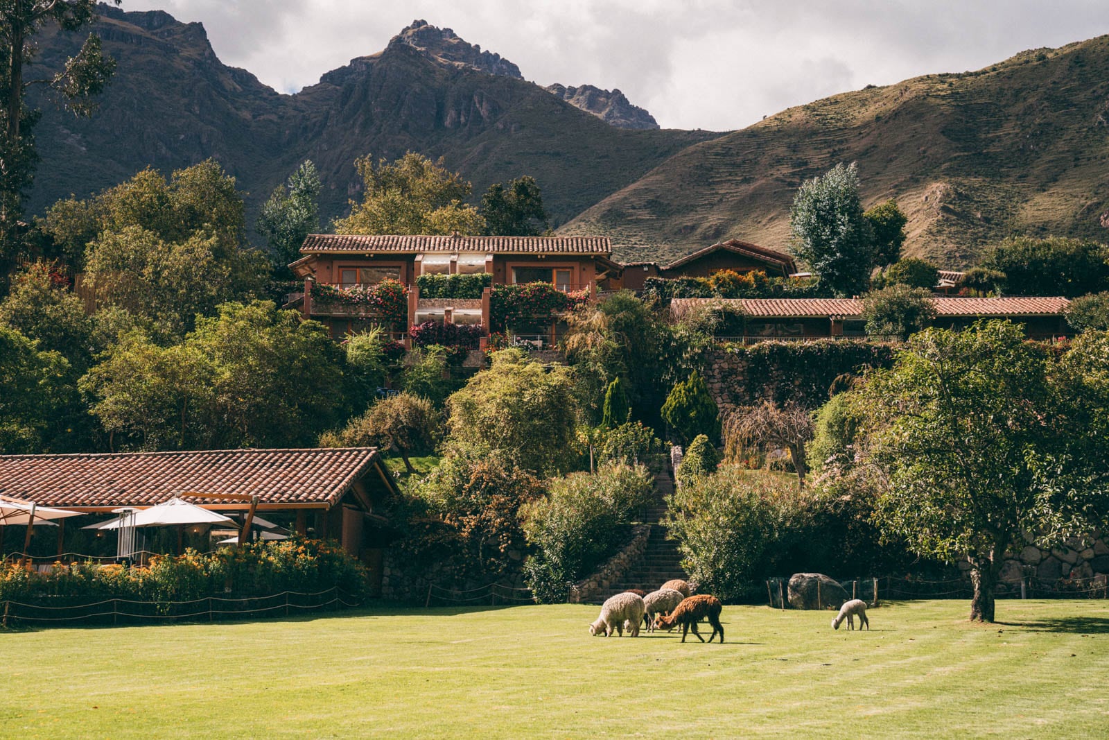 At Rio Sagrado, A Belmond Hotel, Sacred Valley, alpacas serve as a friendly welcome party. (Photo courtesy of Rio Sagrado, A Belmond Hotel, Sacred Valley)